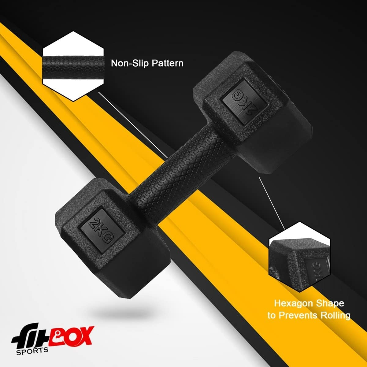 FitBox Sports 4kg Exlusive Octa PVC Fixed Dumbbells (2kg x 2) Black