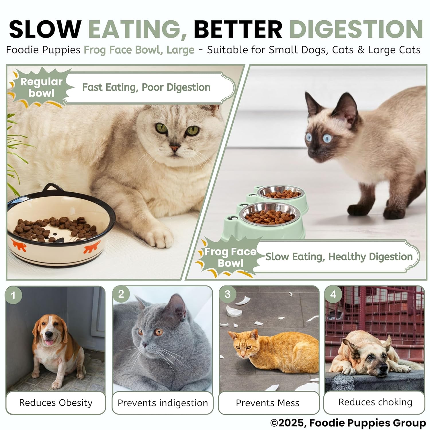 【Frog Shape】:- This Double dog bowl is designed as a fog shape to attract your dog/cat to eat, raise their appetite for food, and make your feeding work more satisfying.