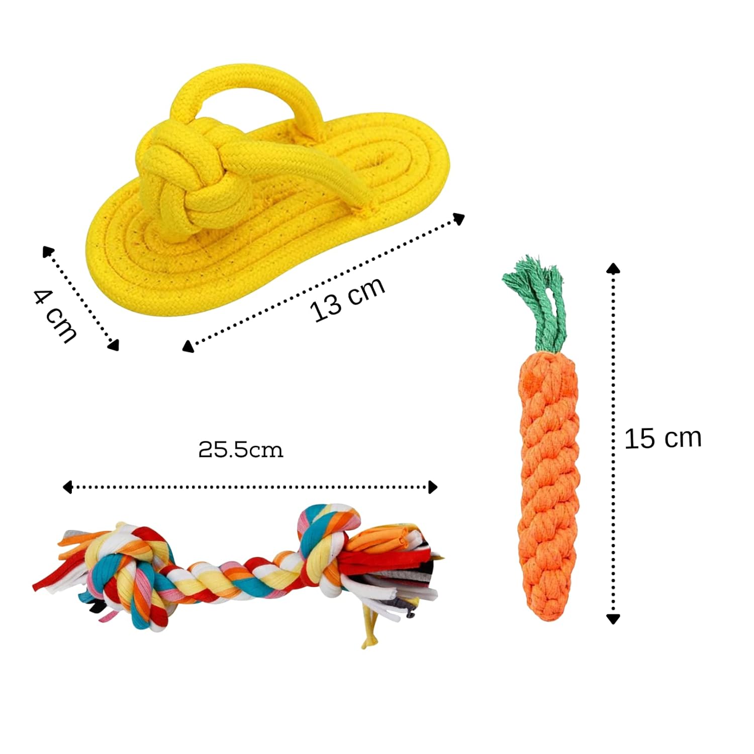 Be the first to review “Foodie Puppies 3-in-1 Cotton Rope Chew Toy Combo for Small Dogs & Puppies | Durable, Safe Braided Rope Toys for Teething, Playing, Fetching & Training (2Knot, Carrot and Slipper) (Color May Vary)”