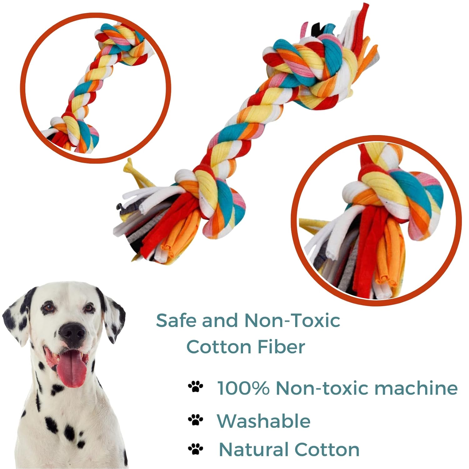 SUPER SAFE NON-TOXIC Our Rope Dog Chew Toys are handmade by twining high quality cotton & polyester threads; this rope is further knotted together for added strength, protection & durability.
