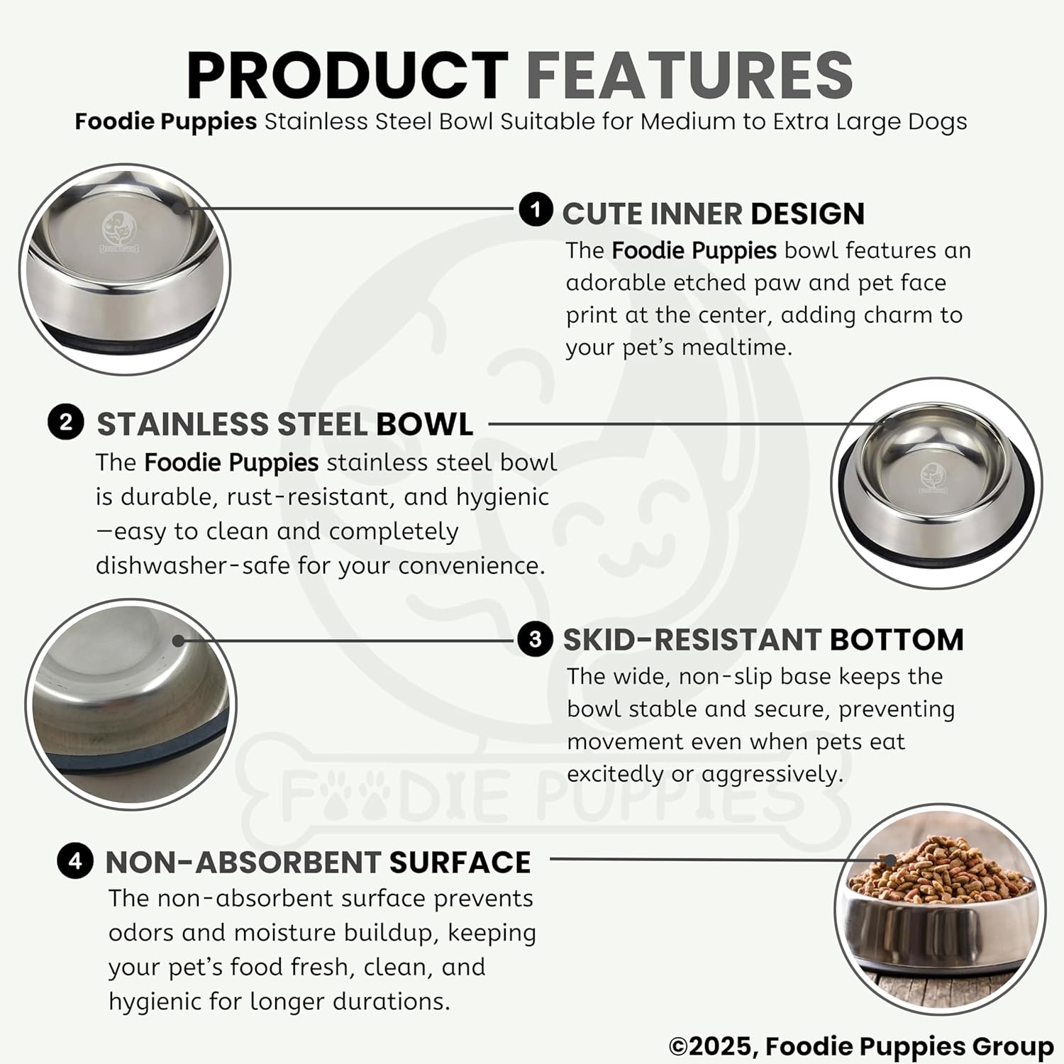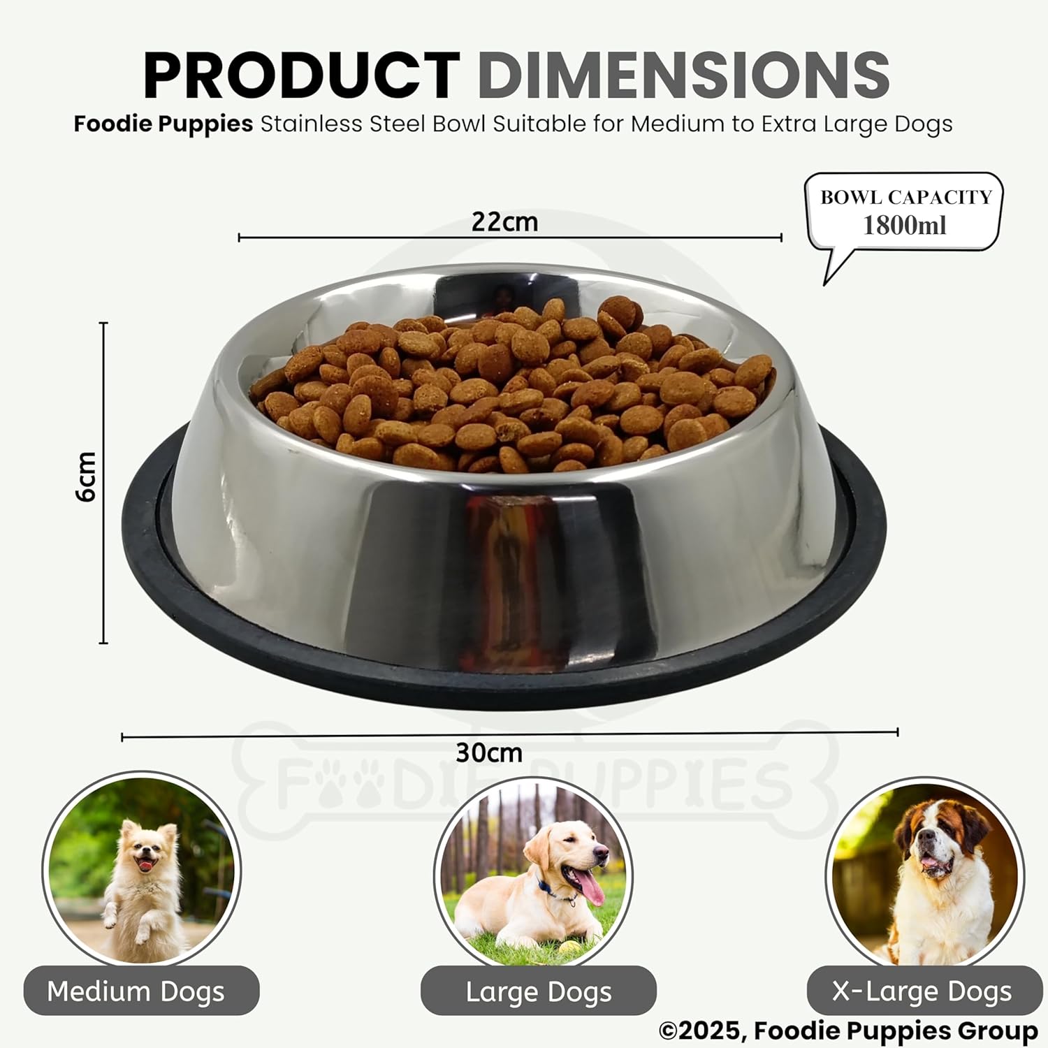 Foodie Puppies Pet Feeding Stainless Steel Bowl for Dogs, Cats & Any Pets – 1800ml, Large I Non-Skid Rubber Bottom Food/Water Bowl I Non-Toxic & 100% Safe for Pets
