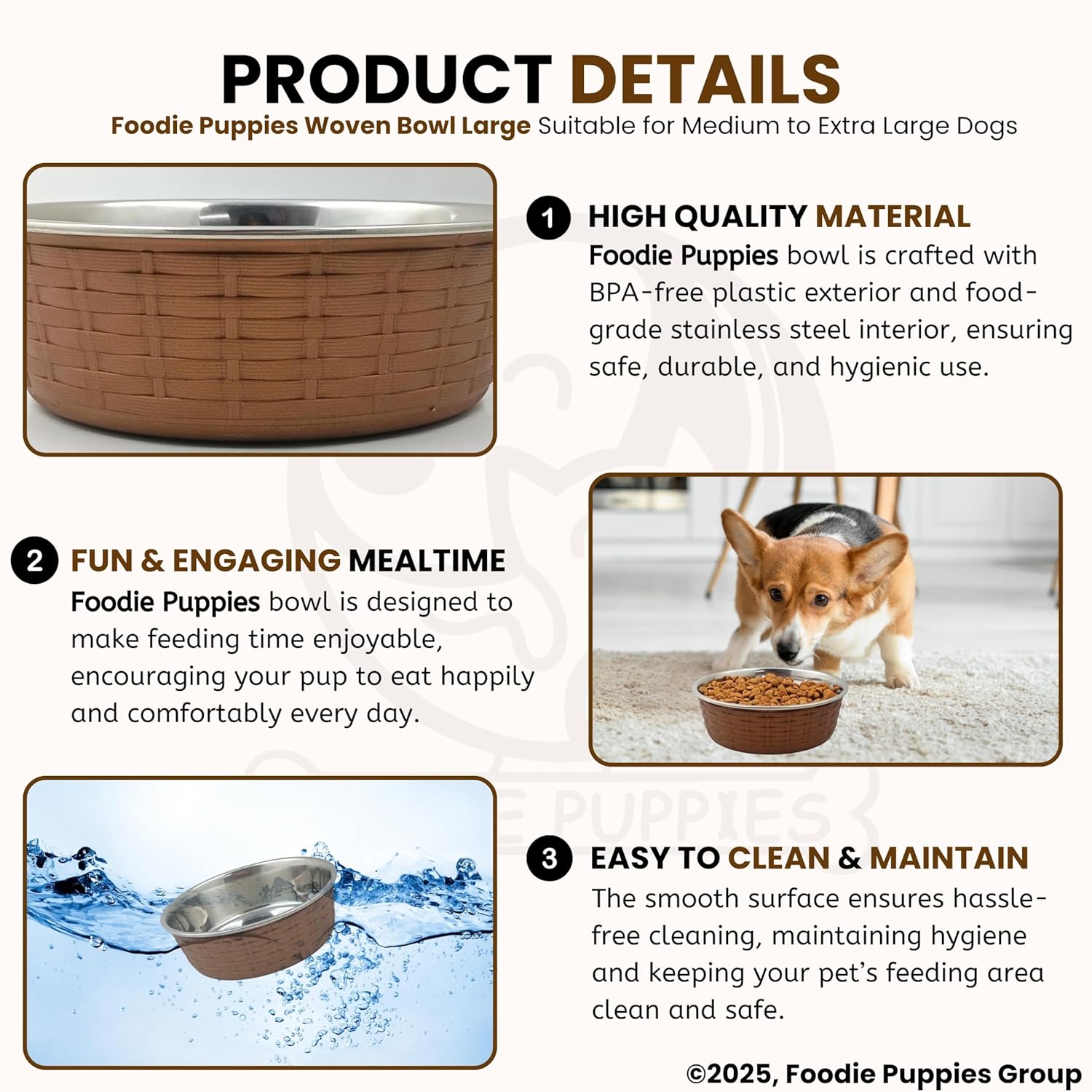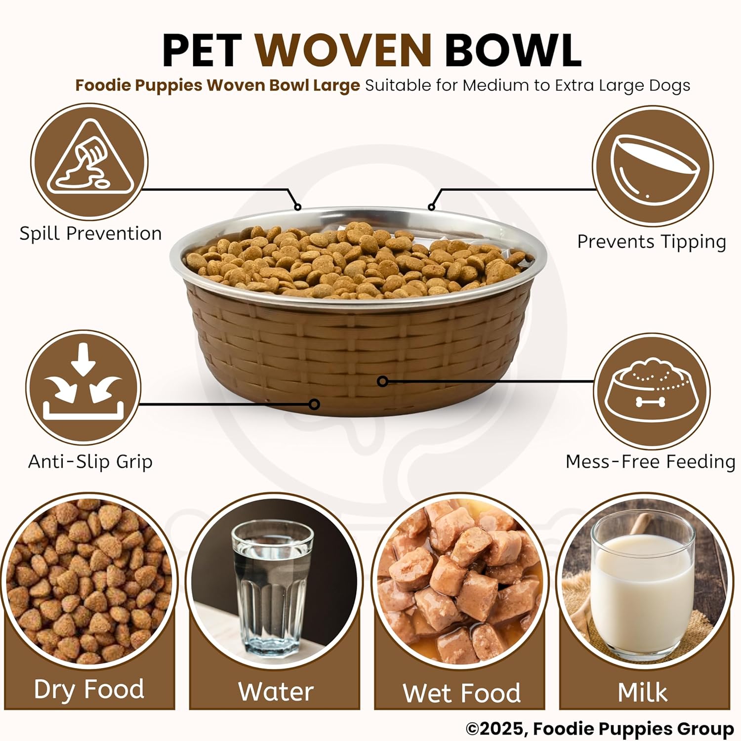 Be the first to review “Foodie Puppies Stainless Steel Pet Feeding Woven Bowl – 1500ml (Brown – Large) for Medium to Large Dogs | Sturdy Base, Food/Water Feeding Bowl | Non-Toxic & 100% Safe for Pets”