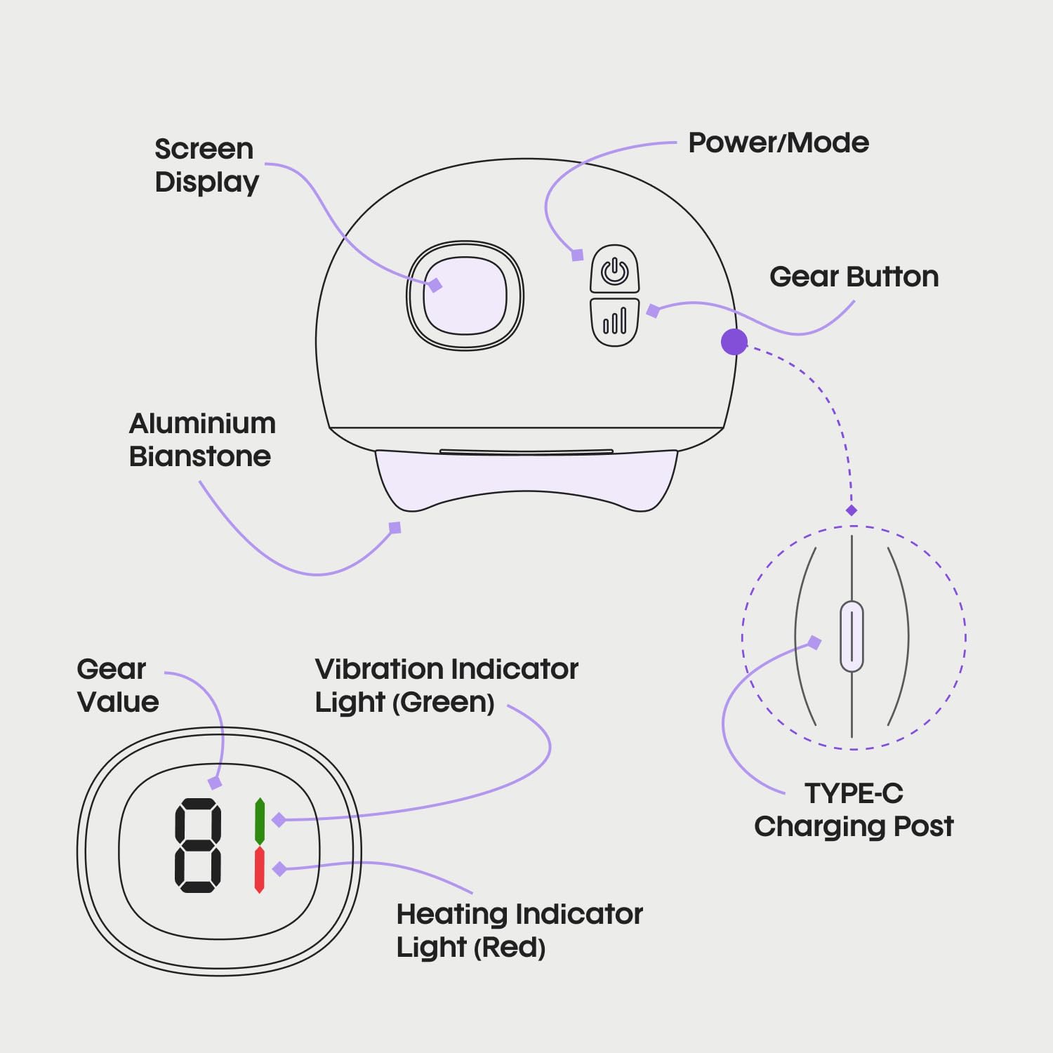 【LED Screen And Multi Adjustable】VIBRATION:9-speed adjustable vibration ,HEAT:9 adjustable temperature heat ,relaxes muscles,enhances product absorption,very suitable for everyone and body parts; LED screen, easy to choose the gear that suits you.