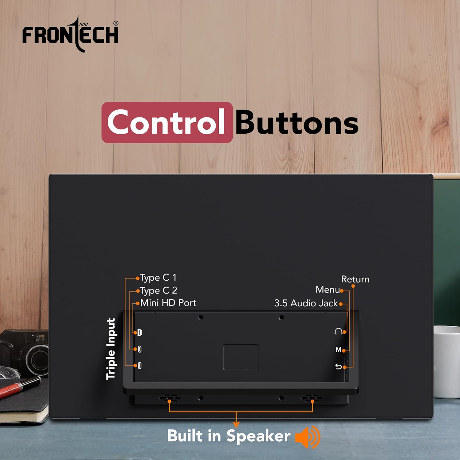 Be the first to review “FRONTECH 15.6″ Portable LED Monitor, Full HD IPS Display, 10000mAh Rechargeable Battery, Dual Type-C & Mini HDMI, Built-in Speakers, 180° Stand, Works with Laptop/PS5/Switch/Phone (MON-0023P)”