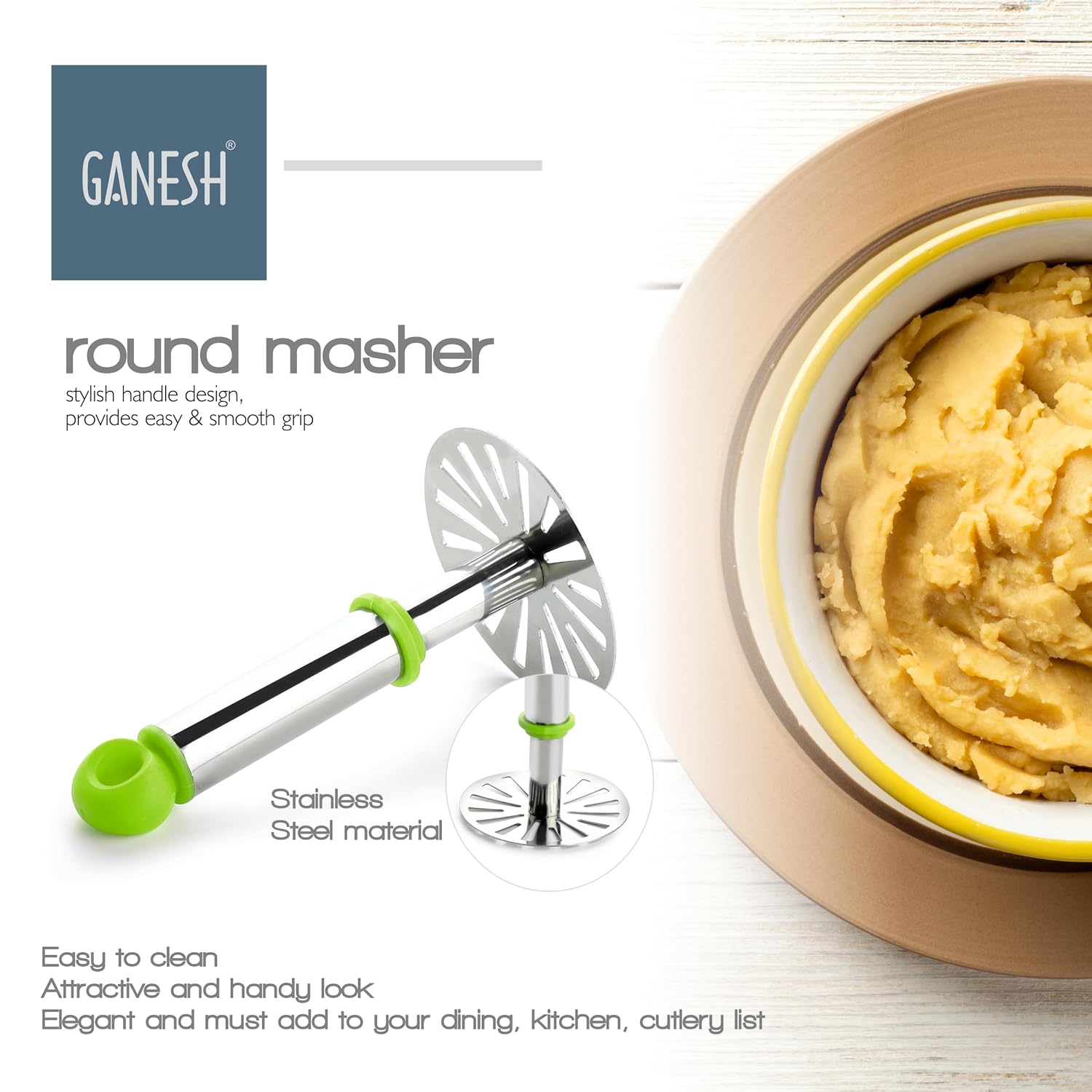 Be the first to review “Ganesh Round Masher Kitchen Gadget with Non-Slip Handle, Masher Utensil for Mashed Potato, Vegetables”