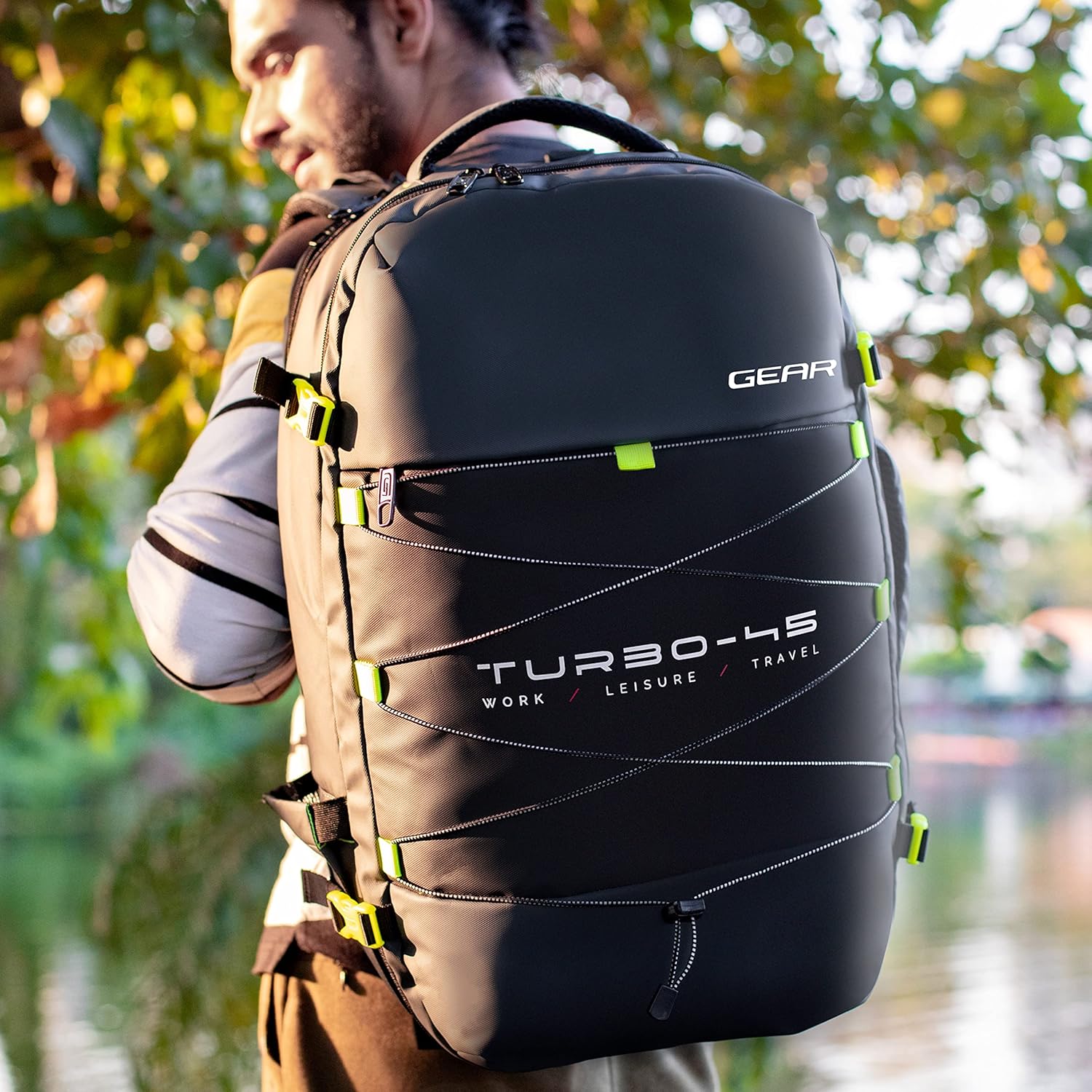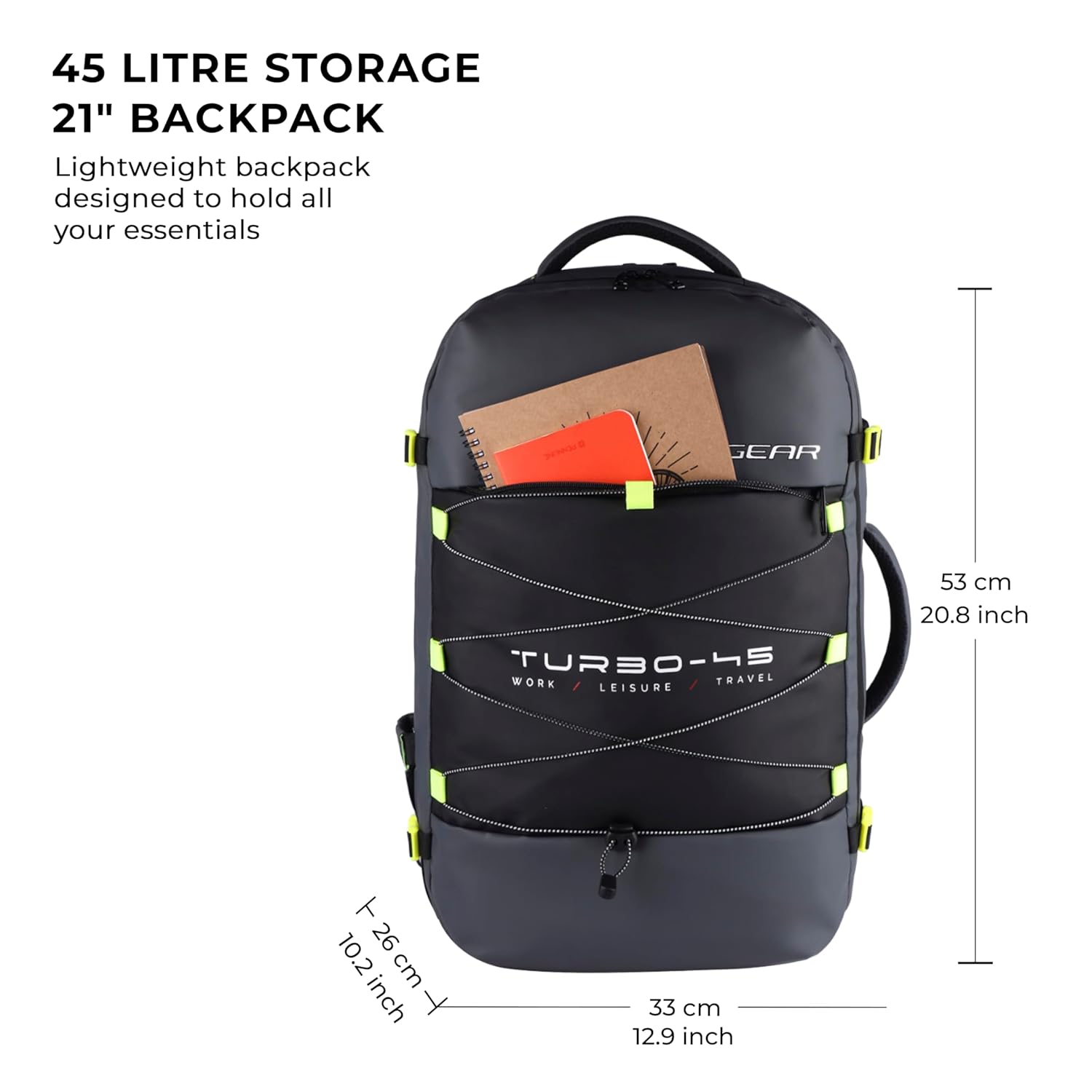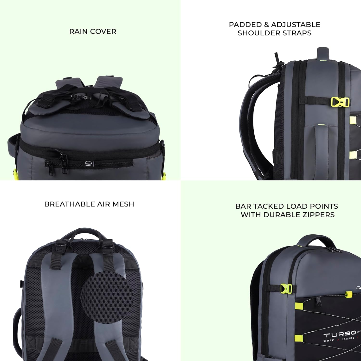 Be the first to review “Gear Turbo 45L Expandable Water Resistant Anti-Theft 4 Compartment Backpack/Laptop Bag/Briefcase For Men/Women With Raincover (Grey)”