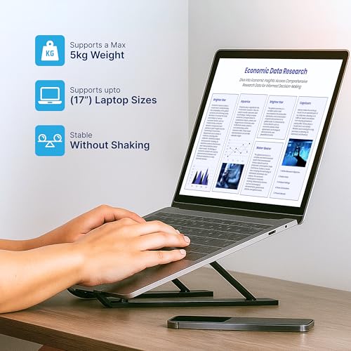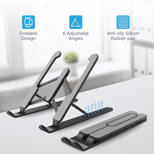 Sturdy ABS Plastic Construction with Anti-Slip Design: Crafted from durable ABS plastic, the stand includes anti-slip silicone pads that securely hold your laptop in place, preventing slips and scratches. Its design ensures stability even during intensive typing sessions.