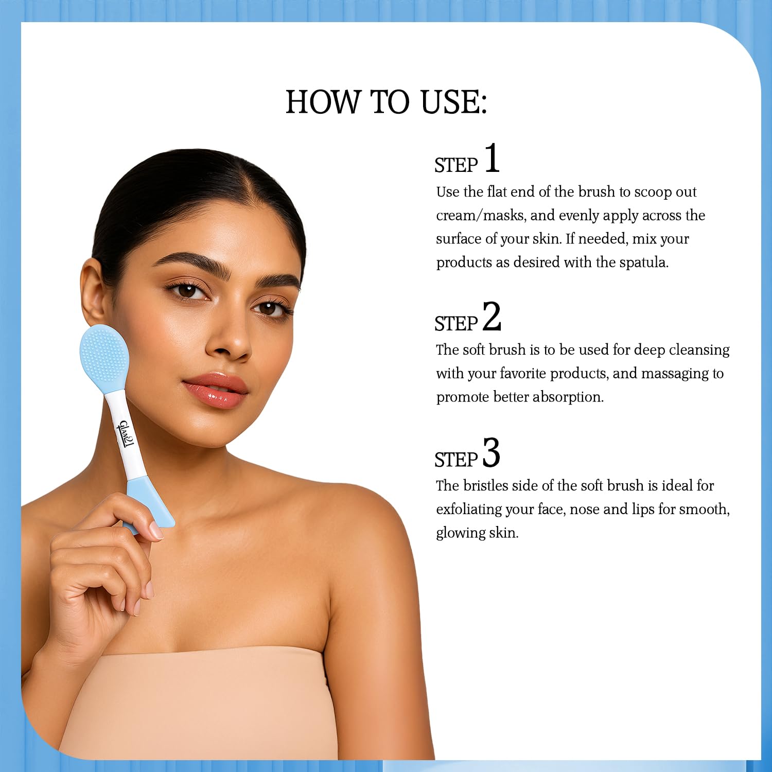 Dual-Sided Design for Versatile Use :Features a soft cleansing brush on one end and a flat spatula on the other for all-in-one skincare application and care.