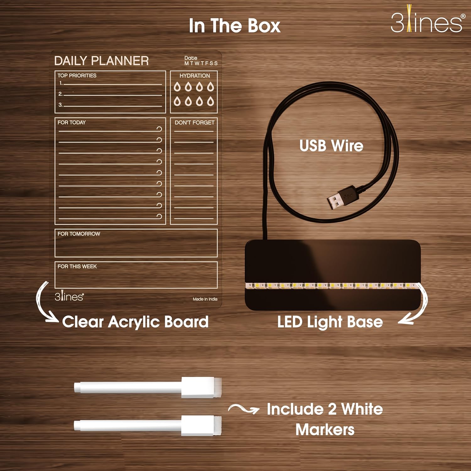 💡 Perfect for jotting down notes, creating artwork, or displaying messages, the 3 Lines Acrylic LED Base Glowrite Board features bright LED lights in warm white color for maximum visibility. Ideal for both home and office use, it boasts a sleek and modern design with a twin-color piano black finish, and its durable construction ensures long-lasting reliability.