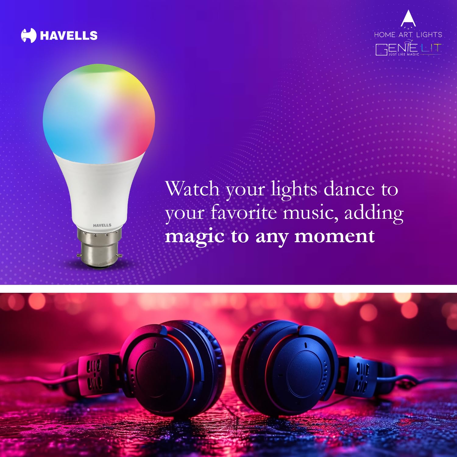 RGB Lights- Set the right tone with a 16M colour palette at your fingertips. From warm to cool colours, and dim to party colours, the Havells smart bulb efficiently enables you to create a space for your every mood, occasion & festival