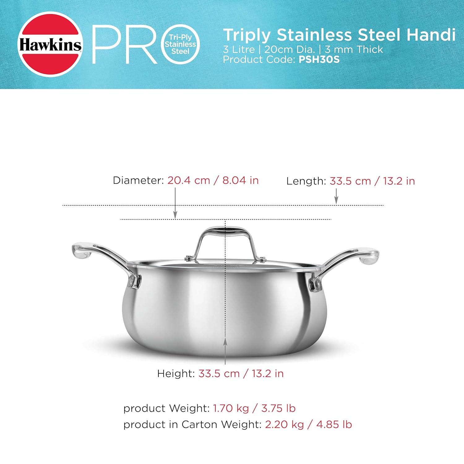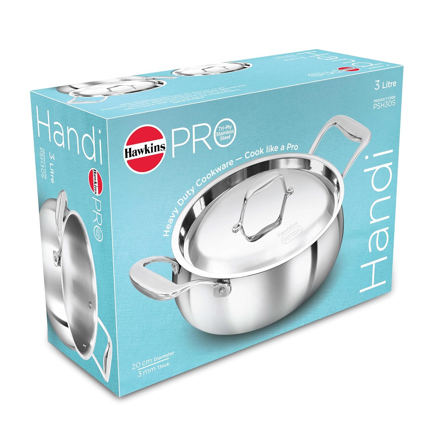 Be the first to review “Hawkins 3L Pro Triply Stainless Steel Handi with Steel Handles and Steel Lid, Silver (PSH30S)”