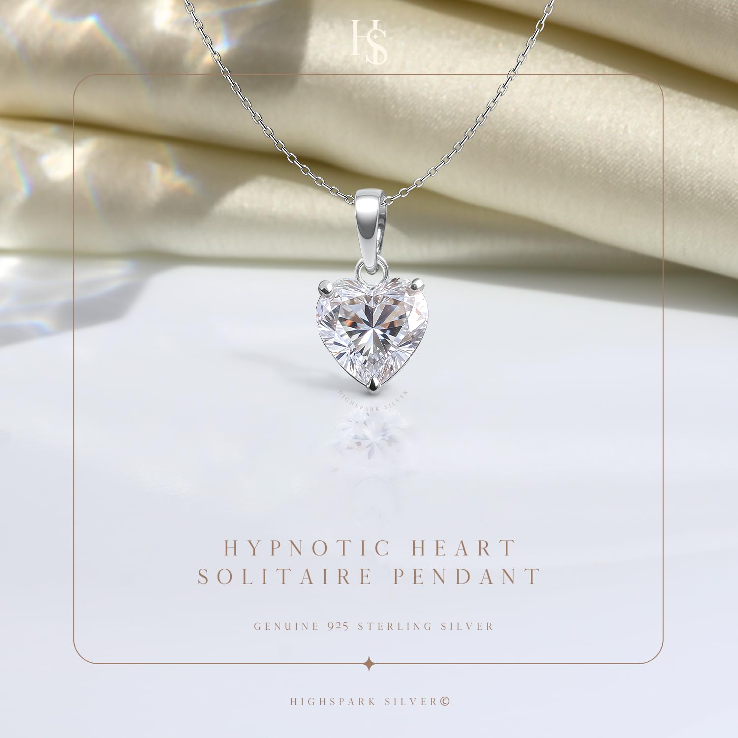 HighSpark 925 Silver Solitaire Heart Pendant with Chain For Women | 92.5 Sterling Silver & Diamond like Brilliance Sparkling Zirconia for that Stunning Shine | Lovely Gift