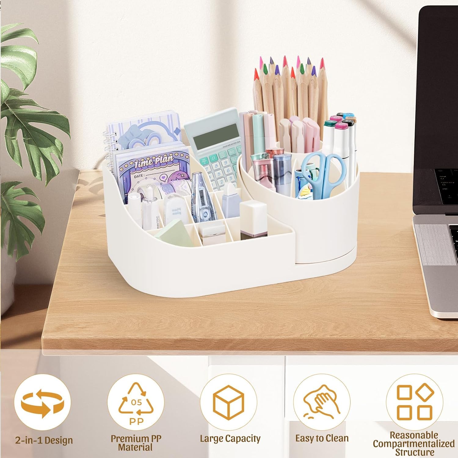Premium Material – This storage drawer organizer is crafted from durable ABS plastic, ensuring its strength and solidity for long-term use. Four anti-slip pads are installed at the bottom to ensure that the pen holder is firmly on the desk.