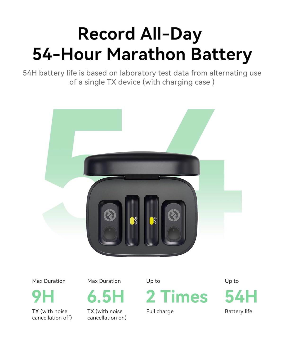 γAs much as 54h Battery LifeγObtain as much as 54h utilizing 2 transmitter (TX) alternately with the charging case. Create endlessly with out battery nervousness.