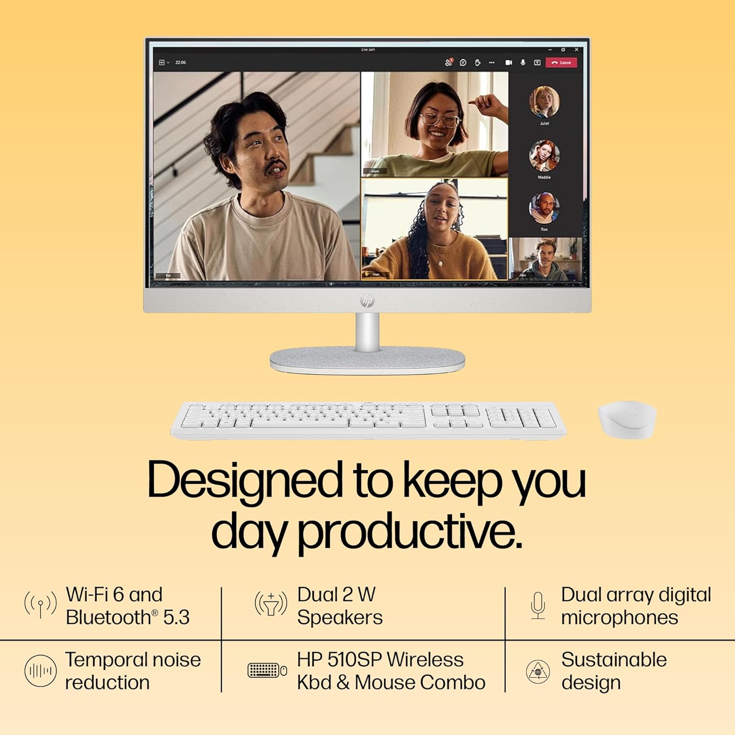 Features: Audio; Dual 2 W speakers| Graphics: AMD Radeon Graphics|Keyboard: HP 510SP White Wireless Keyboard and Mouse Combo| Wireless: Realtek Wi-Fi 6 (1×1) and Bluetooth 5.3 wireless card
