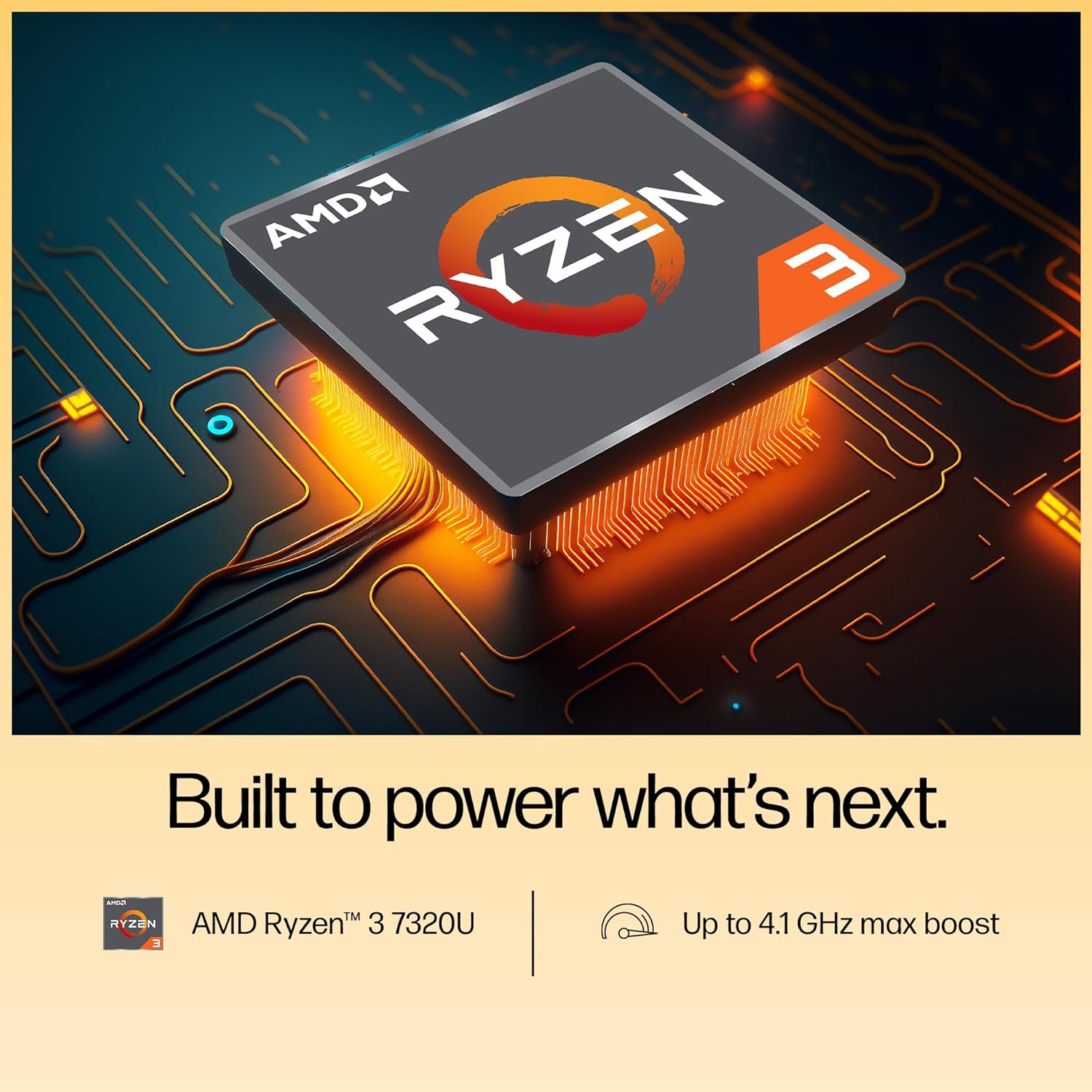 Processor: AMD Ryzen 3 7320U (up to 4.1 GHz max boost clock, 4 MB L3 cache, 4 cores, 8 threads)| Memory: 8 GB LPDDR5-5500 MT/s (onboard)|Storage: 512 GB PCIe NVMe M.2 SSD