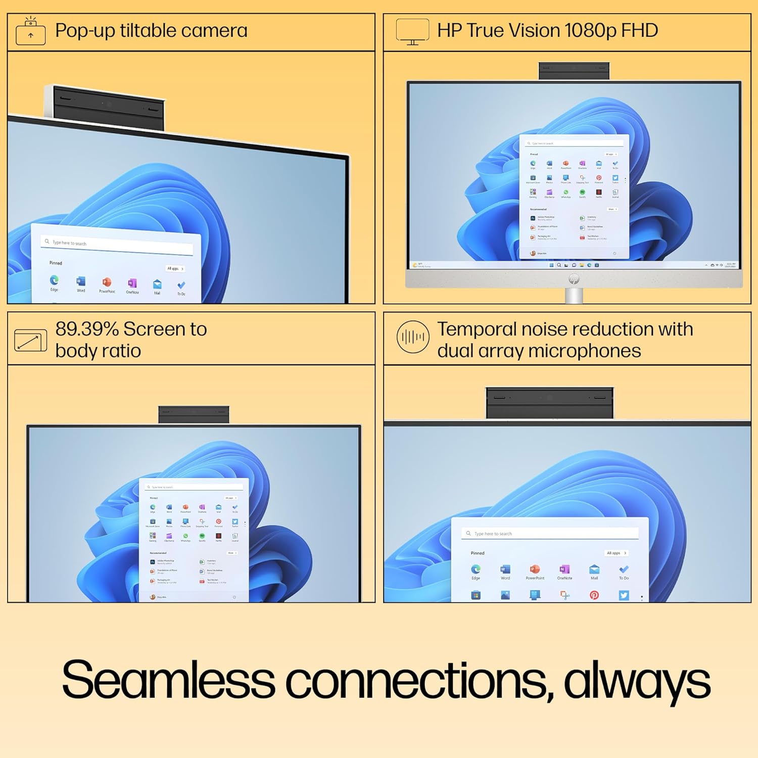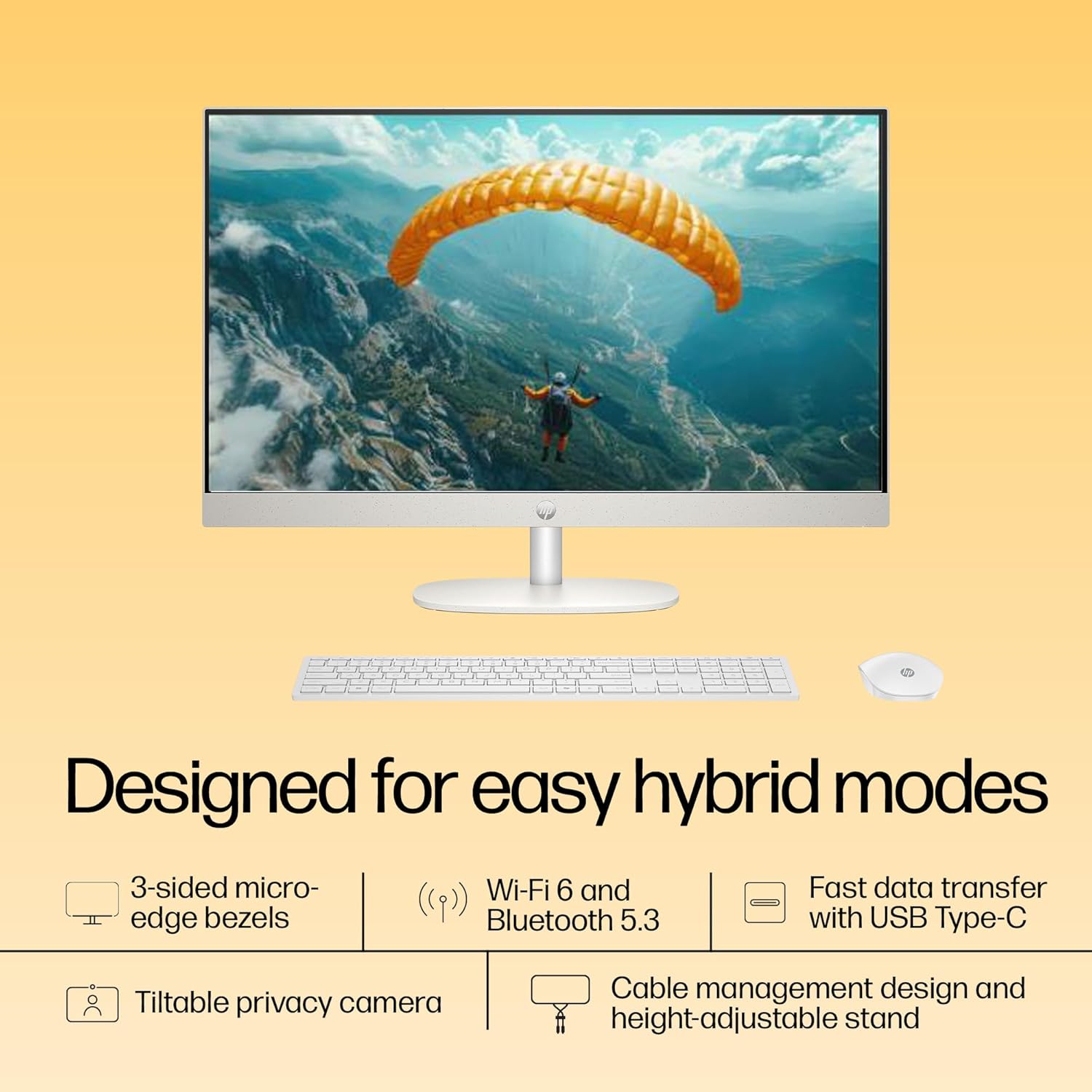 Features: Camera: HP True Vision 1080p FHD IR tilt privacy camera with temporal noise reduction and integrated dual array digital microphones|Keyboard: HP 510SP White Wireless Keyboard and Mouse Combo| Graphics: AMD Radeon Graphics| Wireless Networking:Realtek Wi-Fi 6 (1×1) and Bluetooth 5.3 wireless card