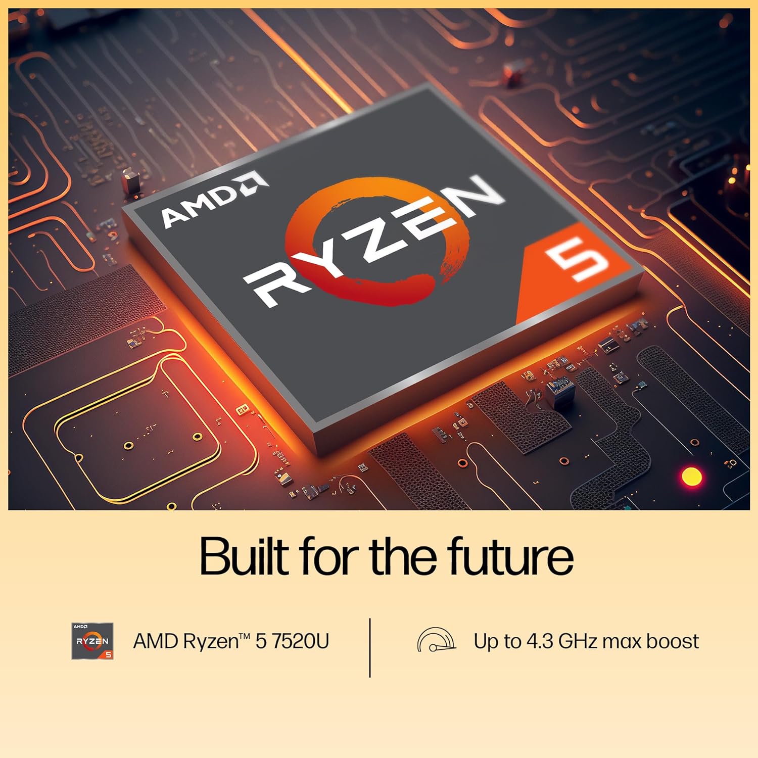 Processor: AMD Ryzen 5 7520U (up to 4.3 GHz max boost clock, 4 MB L3 cache, 4 cores, 8 threads)