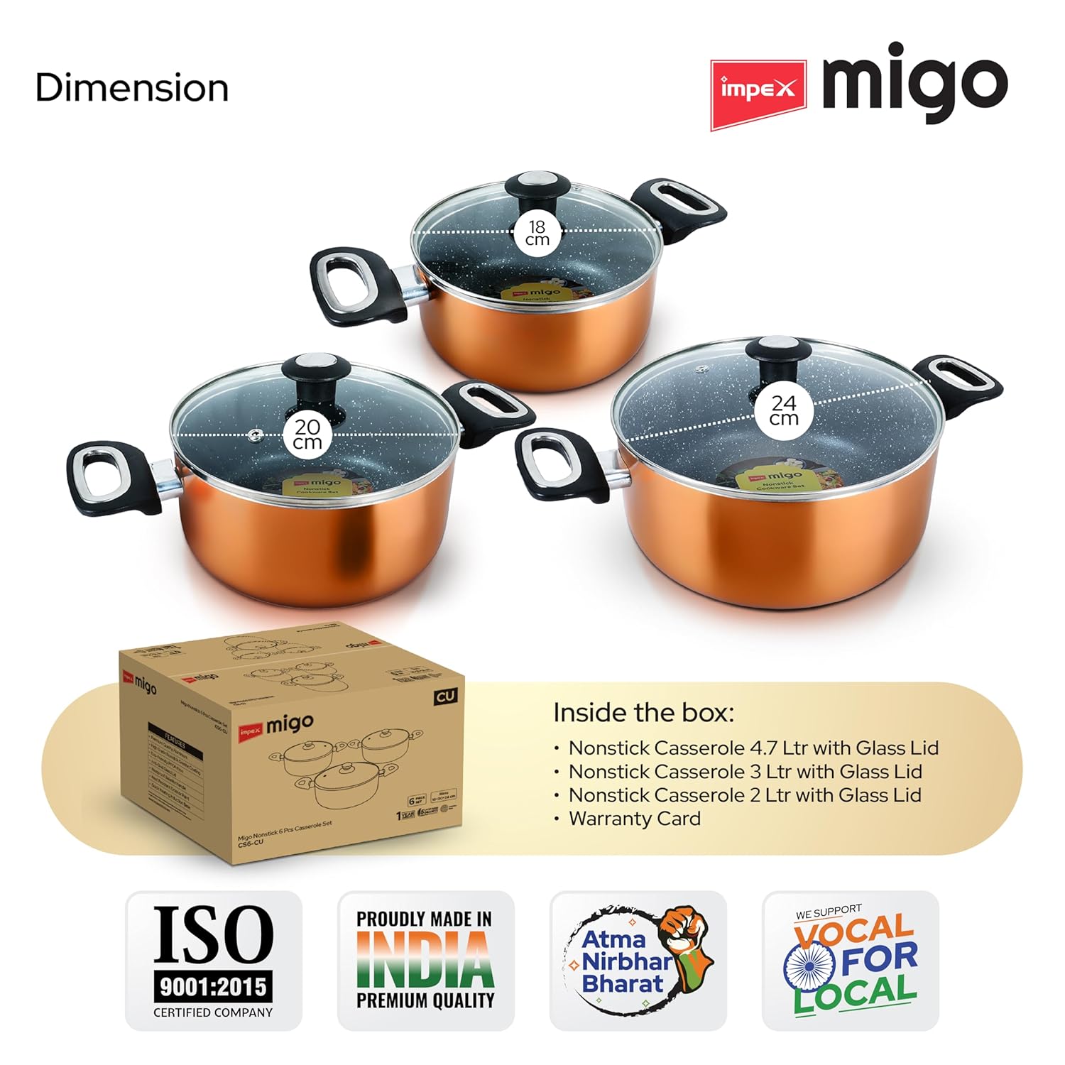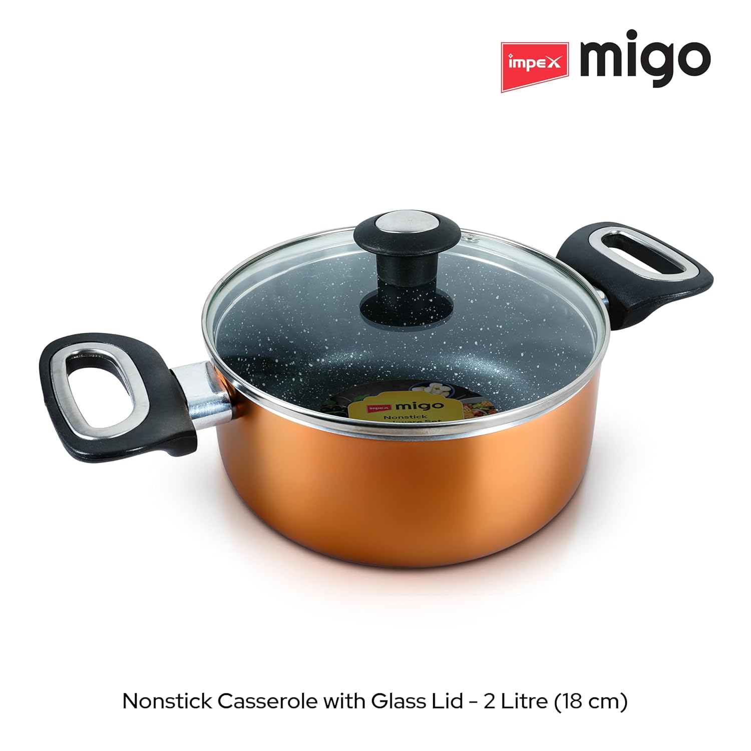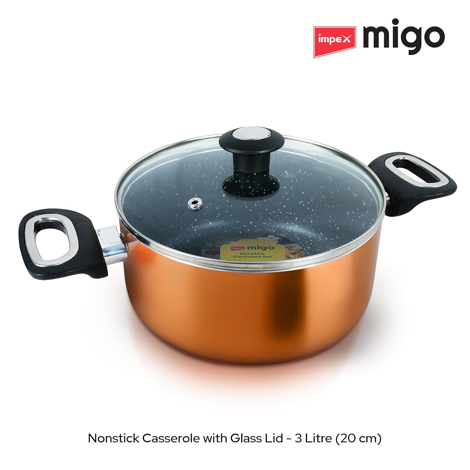 Package Includes: Nonstick Casserole 4.7 Ltr with Glass Lid, 3 Ltr with Glass Lid and 2 litr with Glass Lid