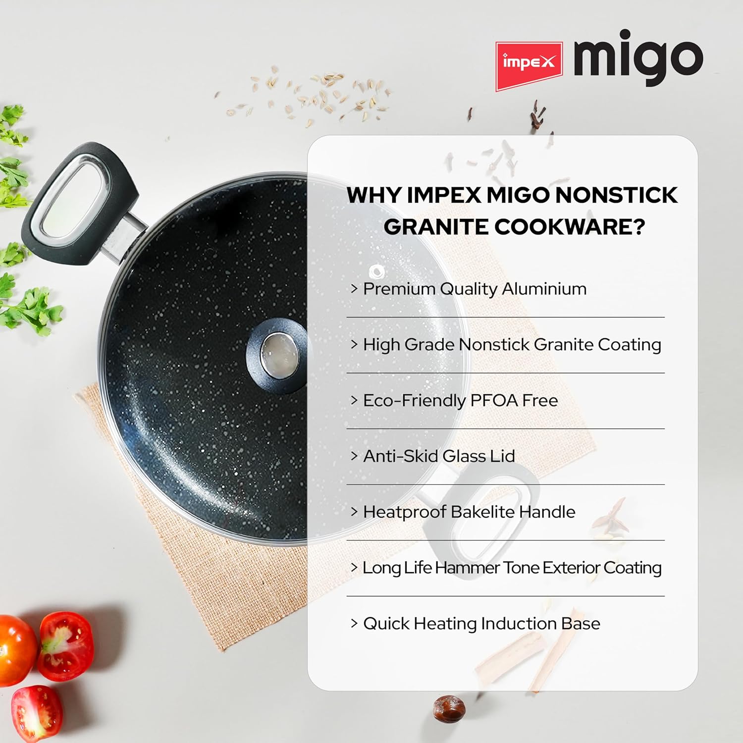 The Impex Migo Cook and Serve Casserole Set is a versatile and durable cookware set that combines style and functionality. With its nonstick granite coating, this set ensures effortless cooking and easy cleaning. The set includes three casserole pans of varying sizes (4.6L, 2.7L, and 1.9L), allowing you to prepare dishes for any occasion, from intimate dinners to large gatherings. The pans feature an induction bottom, making them compatible with all cooktops, including induction stoves. The set also comes with a glass lid, enabling you to monitor your dishes while they cook. Crafted from high-quality aluminium, these casserole pans are designed for even heat distribution and long-lasting performance. Whether you’re simmering a hearty stew, baking a delicious casserole, or preparing a flavourful curry, this set has got you covered. With its sleek and modern design, the Impex Migo Cook and Serve Casserole Set will be a stylish addition to your kitchen.