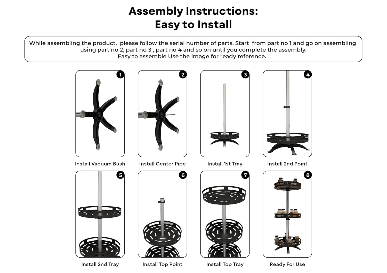 𝐒𝐭𝐚𝐛𝐥𝐞 & 𝐒𝐞𝐜𝐮𝐫𝐞 𝐰𝐢𝐭𝐡 𝐒𝐭𝐫𝐨𝐧𝐠 𝐒𝐮𝐜𝐭𝐢𝐨𝐧 𝐅𝐨𝐨𝐭 𝐏𝐚𝐝𝐬: Equipped with four strong suction cups, the rack remains firmly stable on any surface. The reinforced rotary axis provides extra stability, and you can adjust the height of the layer to accommodate spice jars of different sizes.