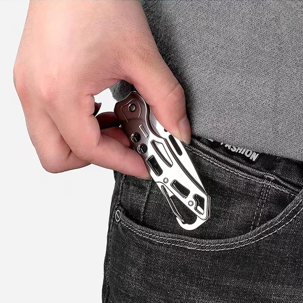 This multifunctional folding keychain gadget is designed for men who value practicality and convenience in their daily lives. Its compact and lightweight design makes it an ideal companion for organizing keys and handling small tasks. The durable construction ensures long-lasting performance, while the sleek silver finish adds a touch of style. Perfect for outdoor activities, camping, and everyday use, this keychain gadget is a versatile tool that fits easily in pockets or bags. The smooth folding mechanism allows for effortless operation, making it a reliable choice for quick fixes and small tasks. Whether you’re on the go or at home, this keychain gadget is a practical addition to your daily essentials.