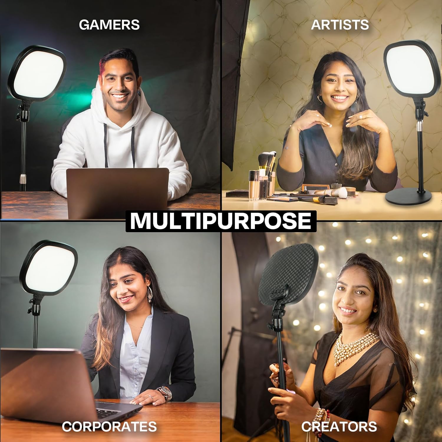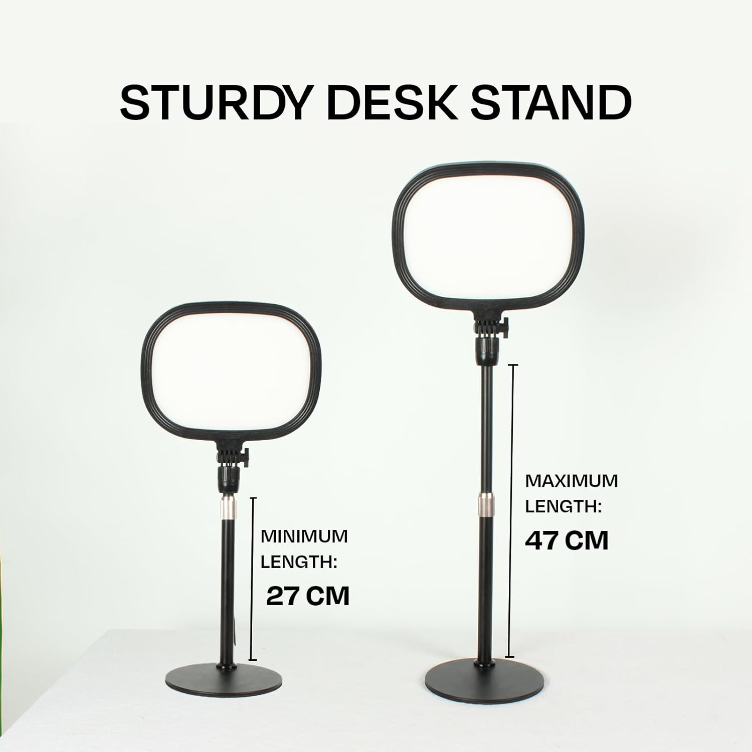 ⚡Experience professional-grade illumination with our advanced LED slab light, featuring flicker-free technology and adjustable color temperature for video, streaming, and photography. Paired with a precision aluminium desk stand, engineered for durability and reliability, this combo ensures stable support and long-lasting performance for your devices.
