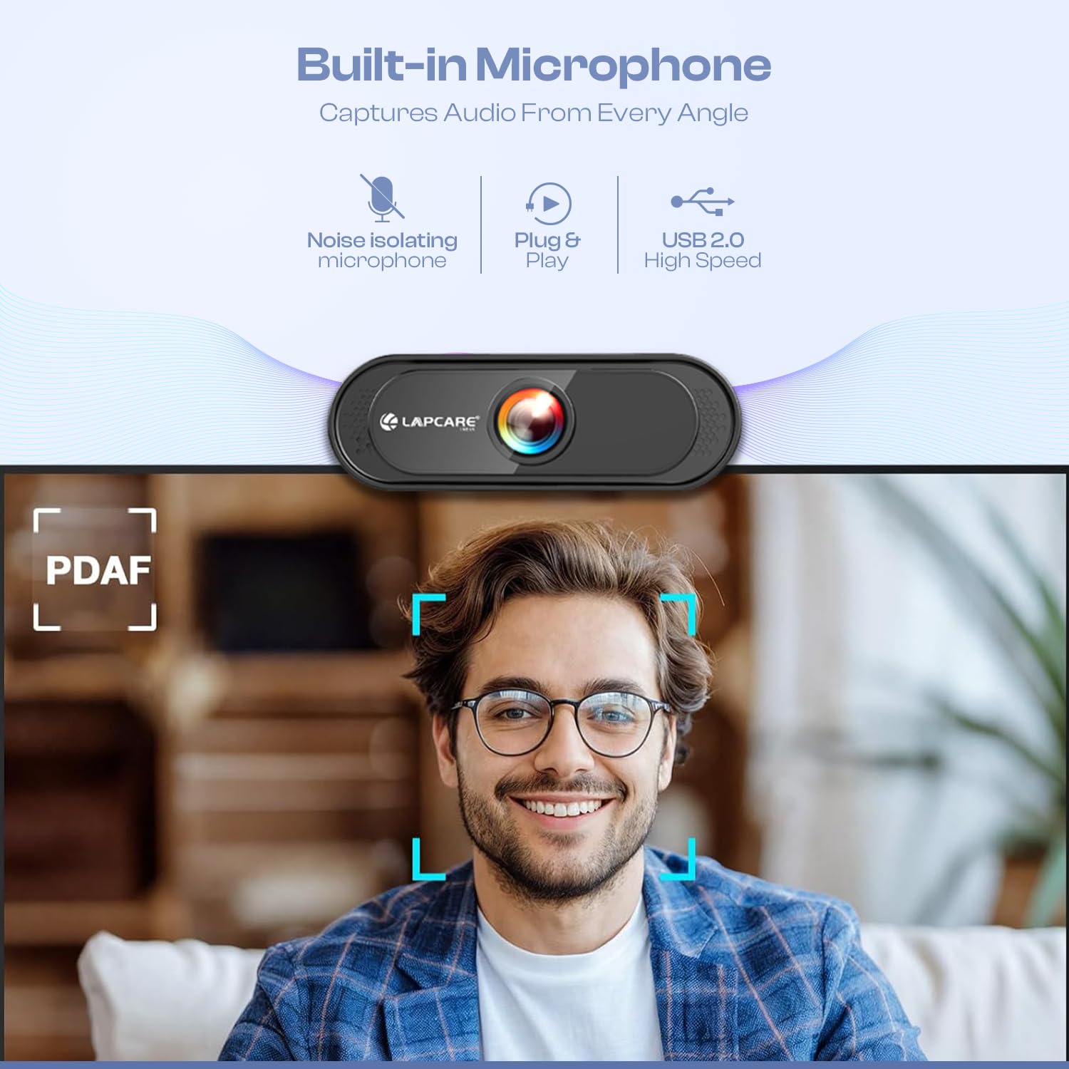 Built-in Noise Reduction Microphone The webcam features an inbuilt noise-isolating mic to ensure your voice is heard clearly by reducing background noise during conferences, online interviews & gaming chats.
