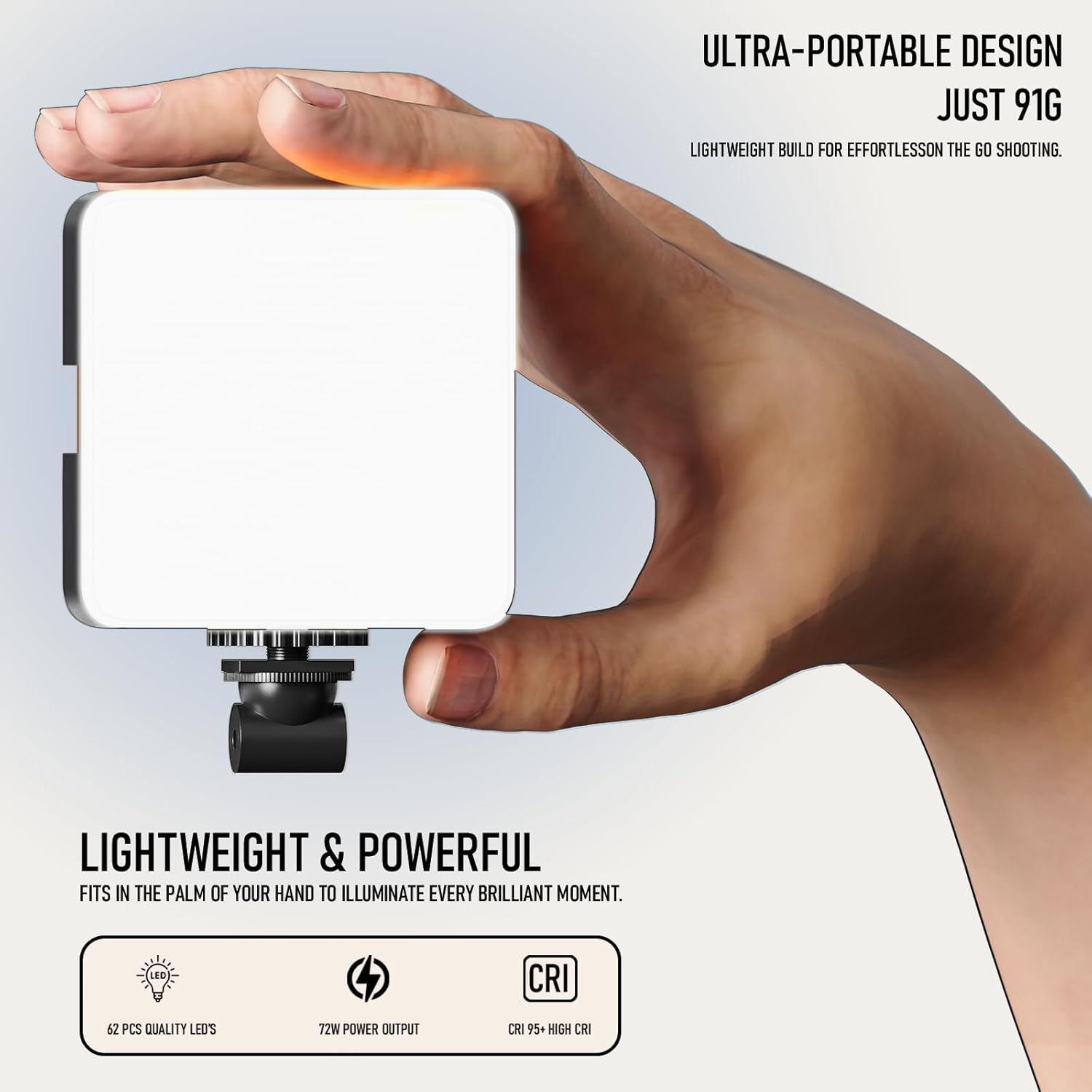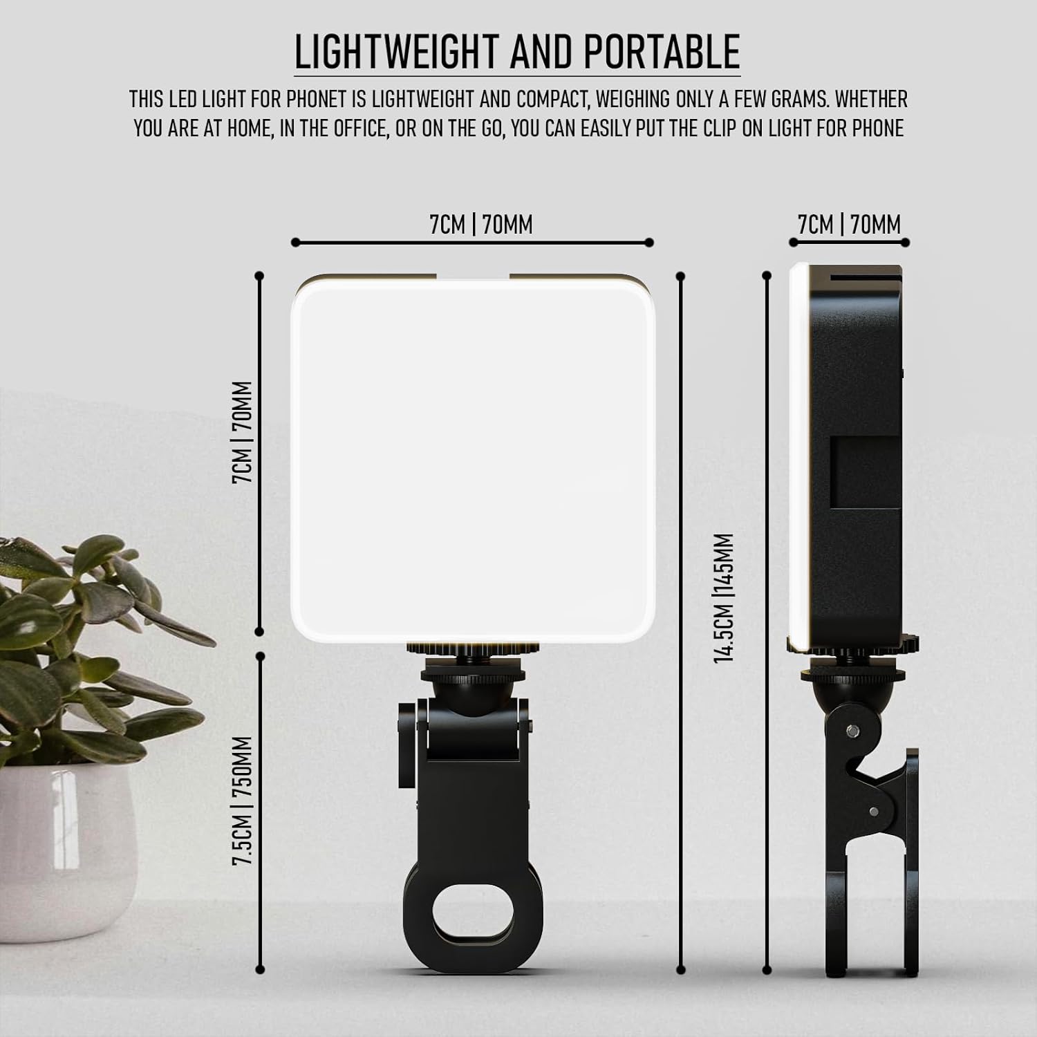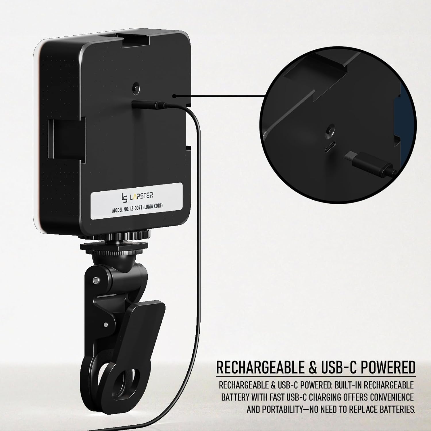 Lapster Luma core LED Video light for video shooting youtube ,Zoom Meeting, Photography Lighting with Clip Dimmable and Rechargeable for Camera Selfie Stick Tripod Laptop Cellphone and other gadgets