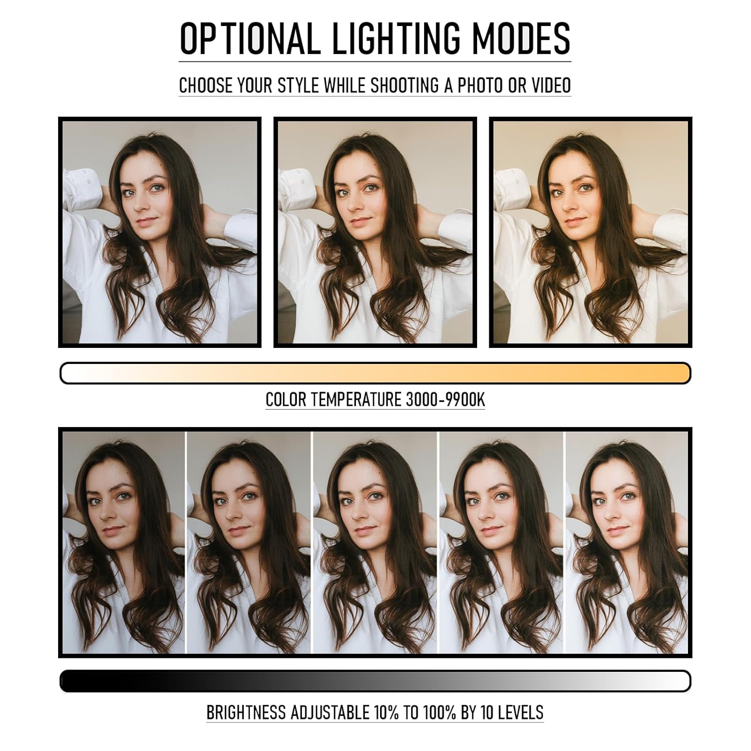 🎛️ Simple Controls for Quick Setup Comes with one easy-to-use buttons to adjust color temperature on the fly. Pairs perfectly with Lapster tripods and selfie sticks, making it a go-to tool for video shooting youtube, makeup tutorials, vlogging, video recording, and virtual meetings.