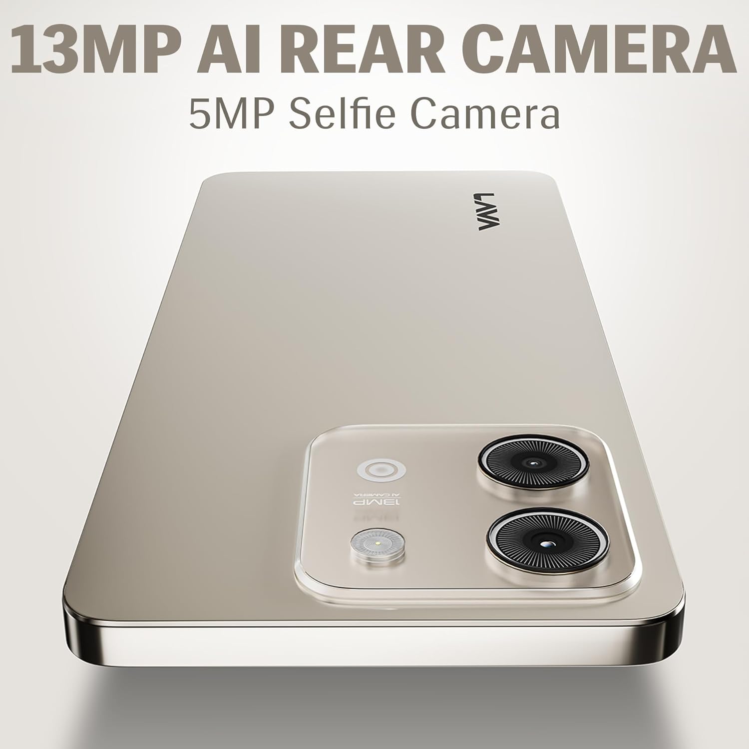 13 MP AI Rear Camera and 5 MP Selfie Camera — snap vivid, detail-rich shots with AI-powered clarity, whether capturing stunning landscapes or perfect selfies.
