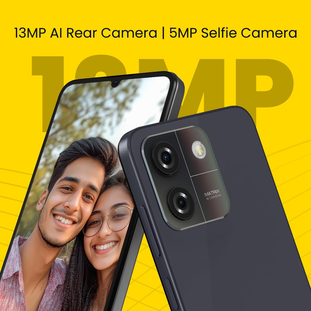 13 MP AI Rear Camera & 5 MP Selfie Camera: Capture stunning, high-quality photos with AI-enhanced clarity and detail, perfect for both landscapes and selfies.