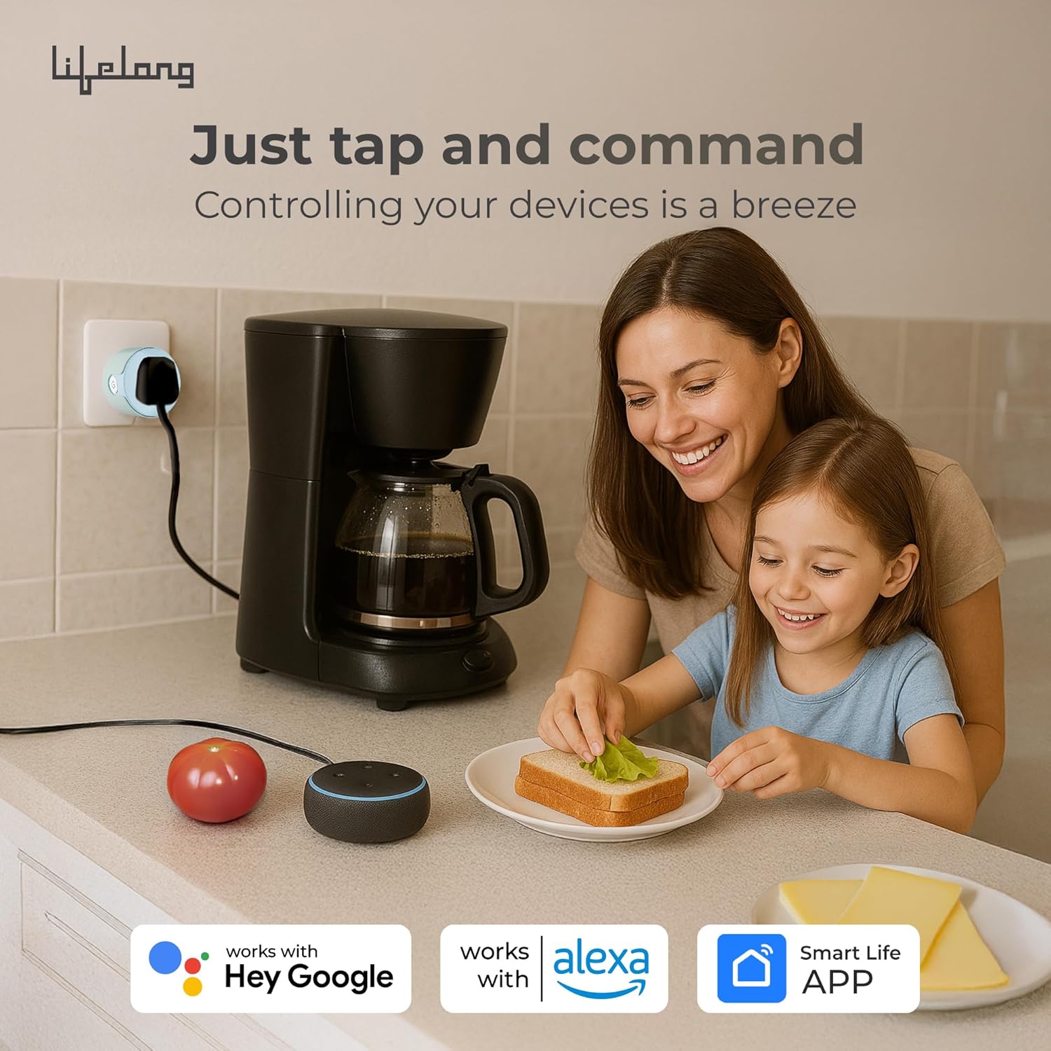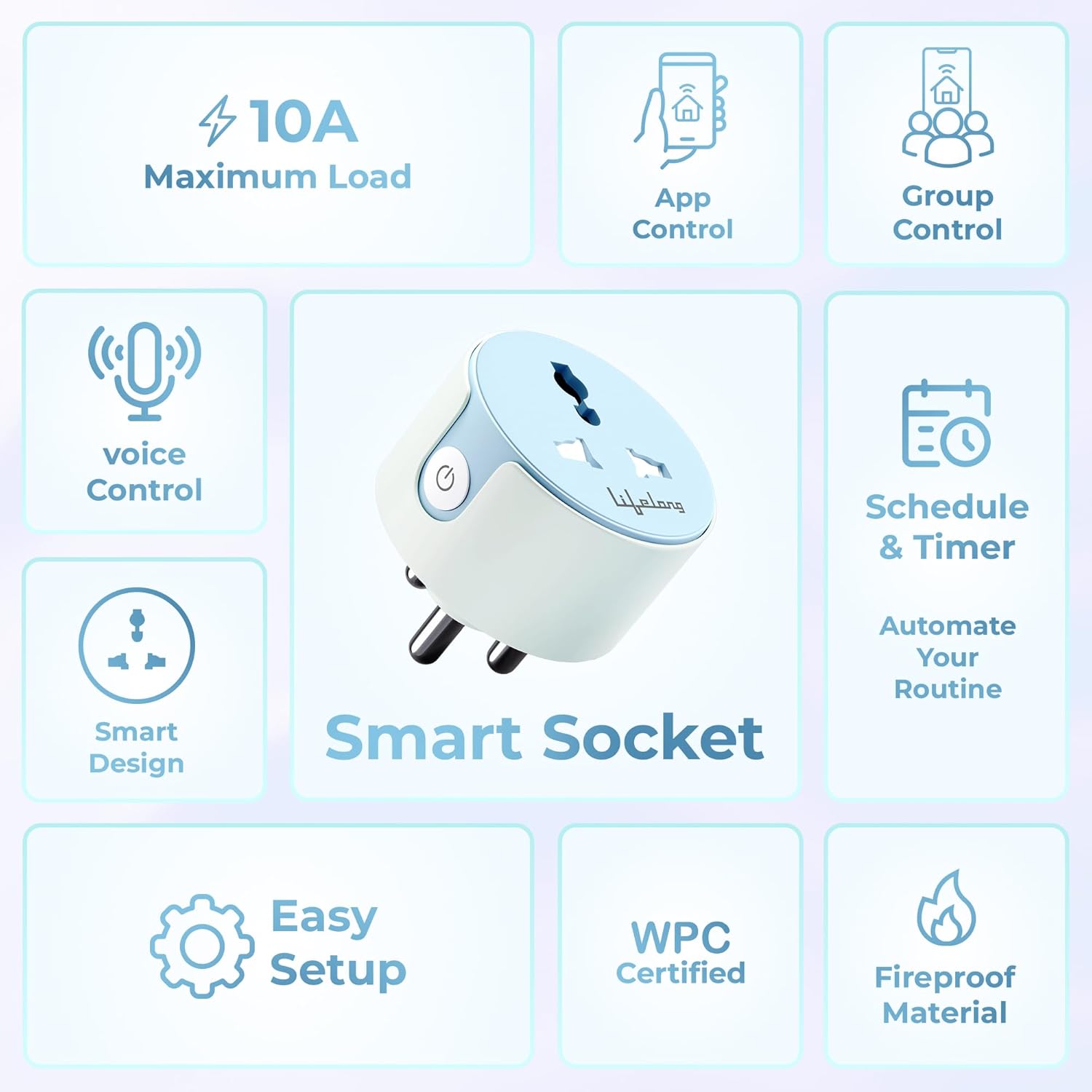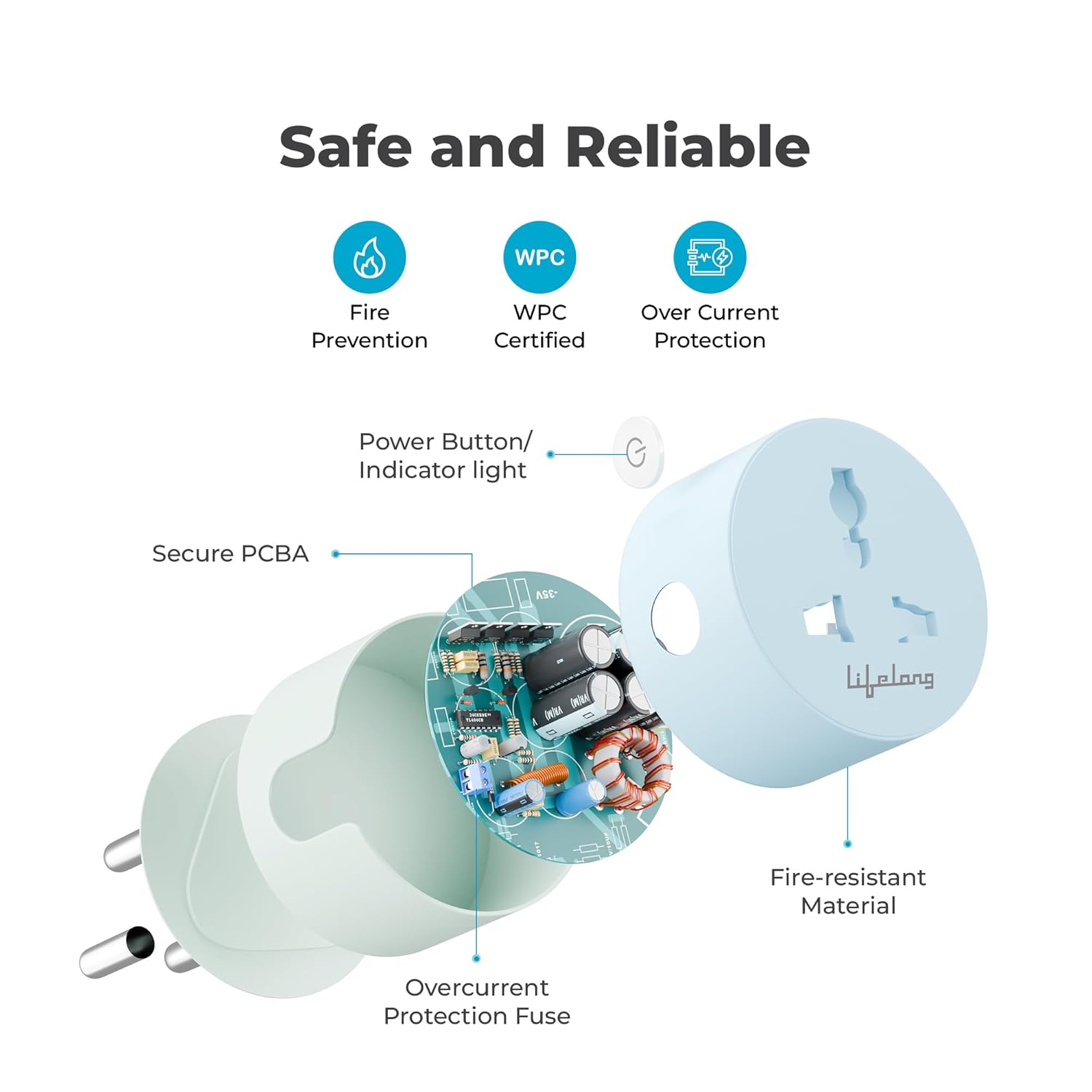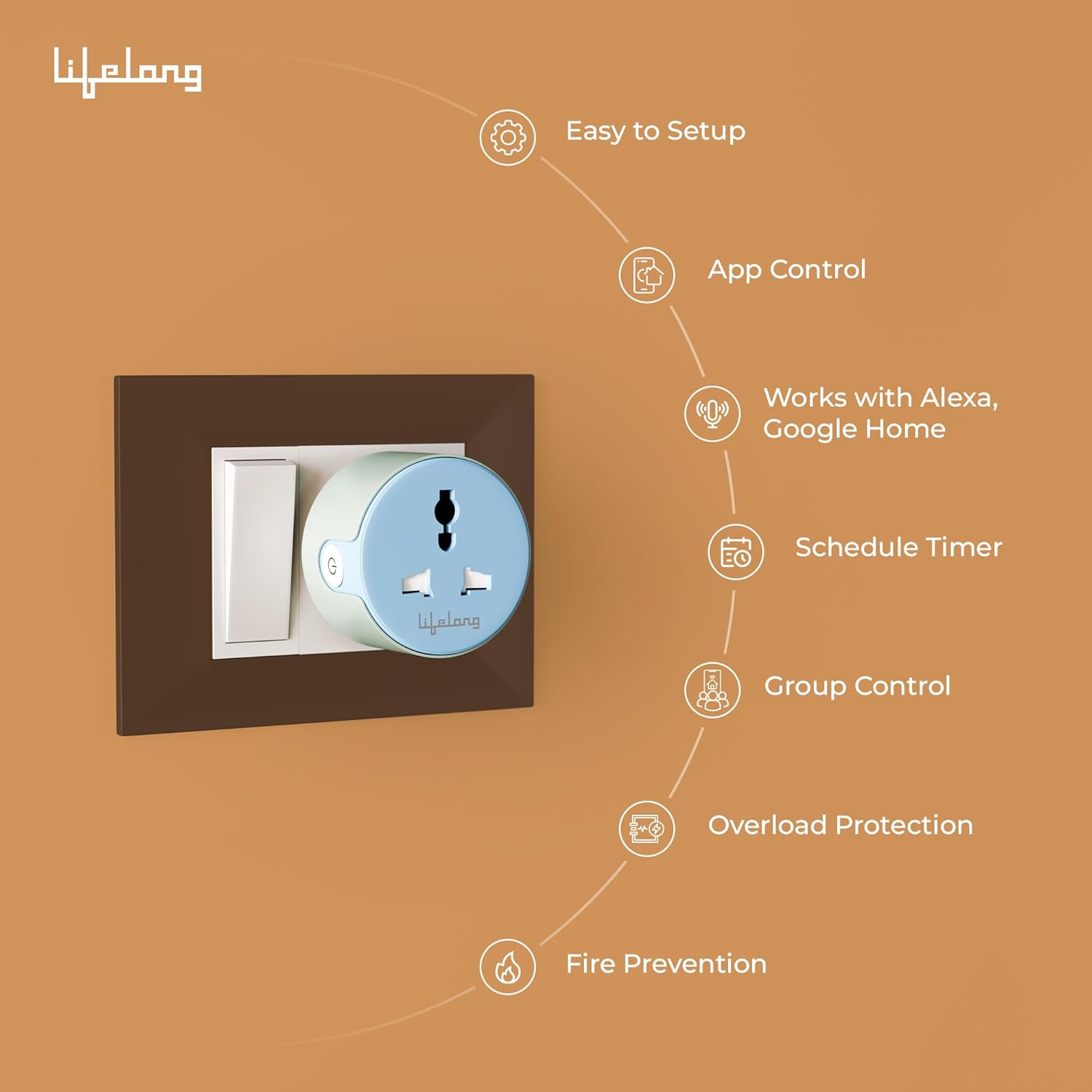Lifelong Electronics 10A WiFi Smart Power Plug for Home Automation | With App Control, Timer, Voice Control, Scheduling | Smart Plugs Gadget | Electrical Switch Socket | Compatible with Alexa & Google