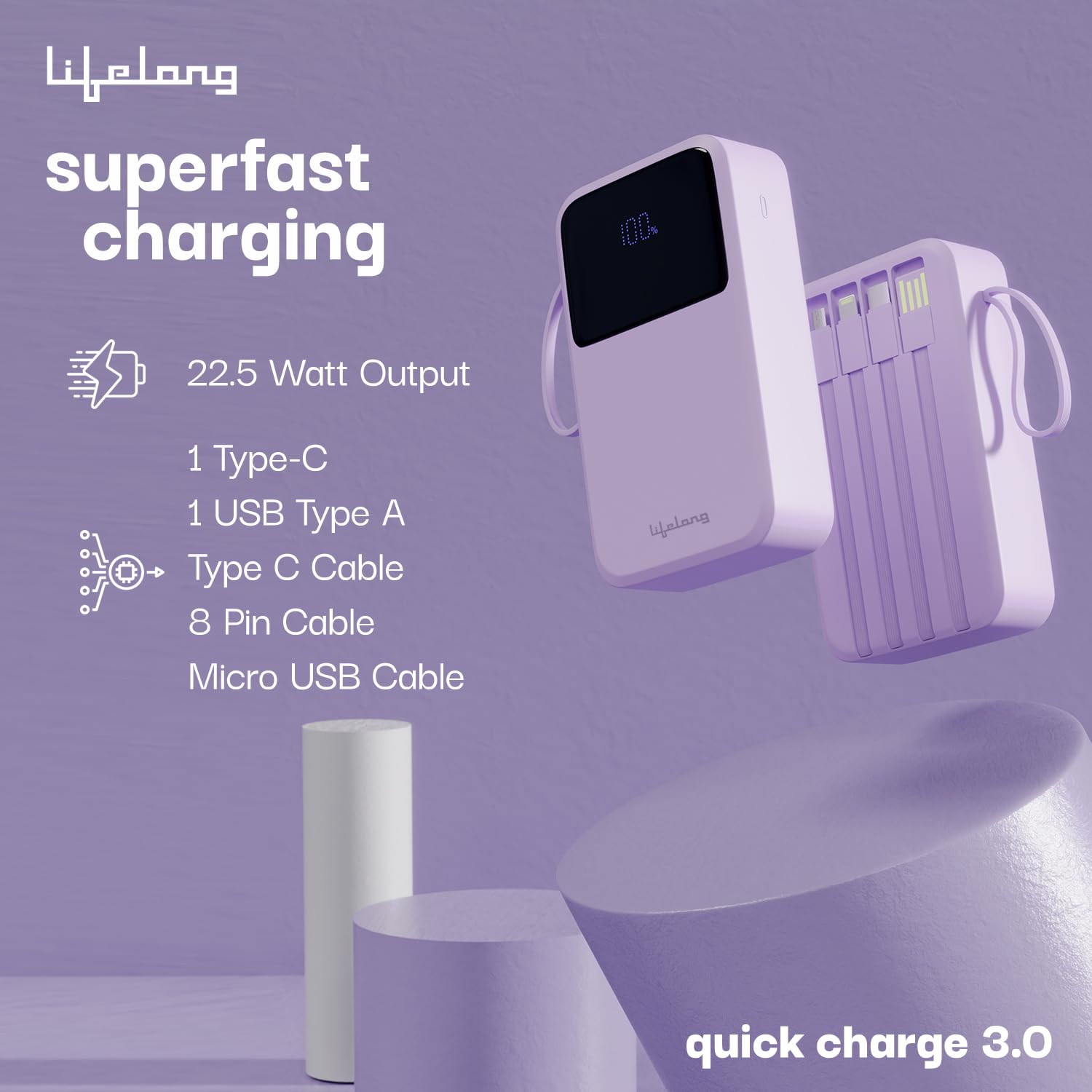 Lifelong power bank combines sleek durability with a vibrant, modern design, offering a stylish and robust solution for your charging needs. We’ve crafted it with high-quality materials to ensure daily wear while maintaining its attractive look. It also has display indicator that keeps you informed of battery levels in real time. Our power bank charges your devices efficiently and complements your style, making it the perfect accessory for fashion-conscious tech enthusiasts.