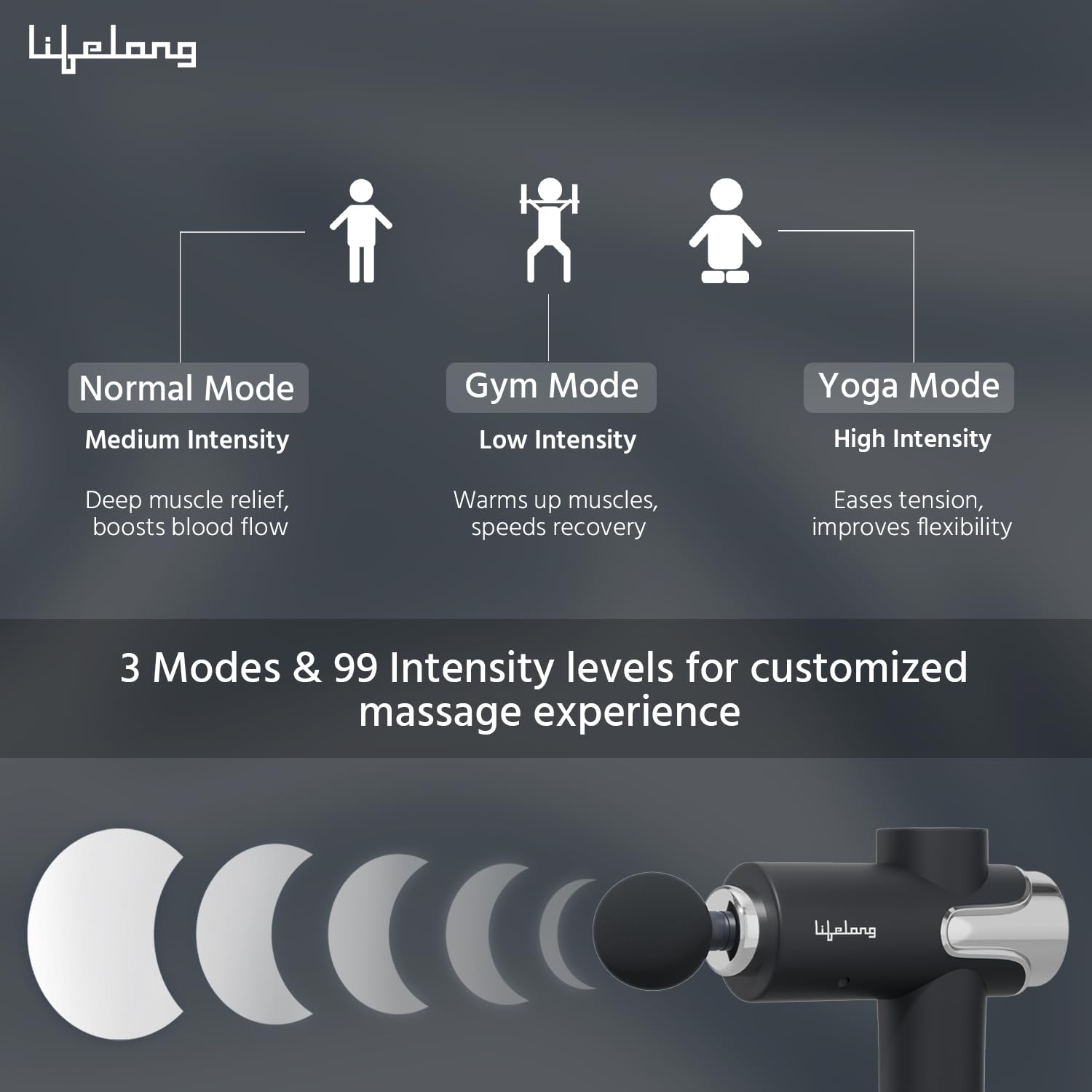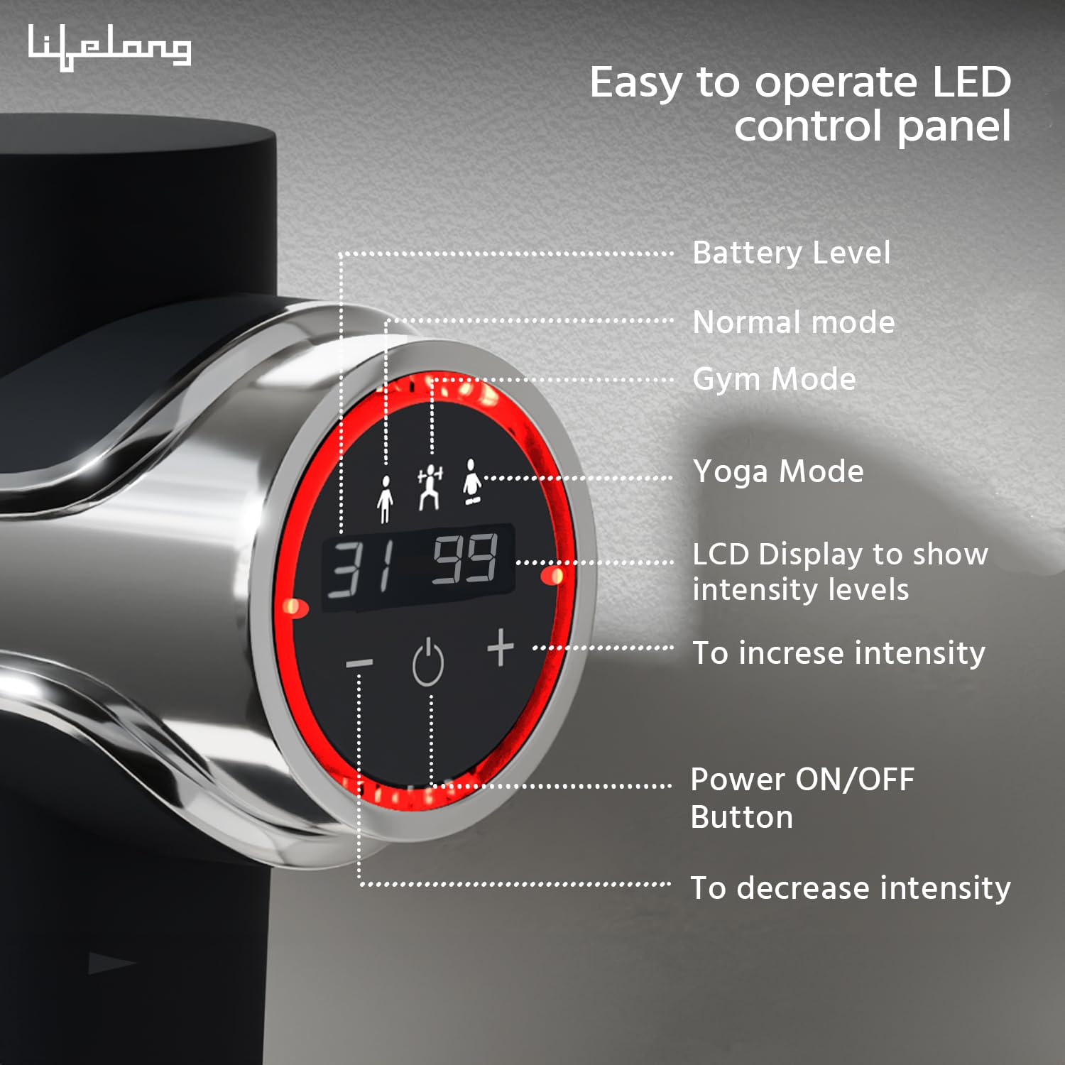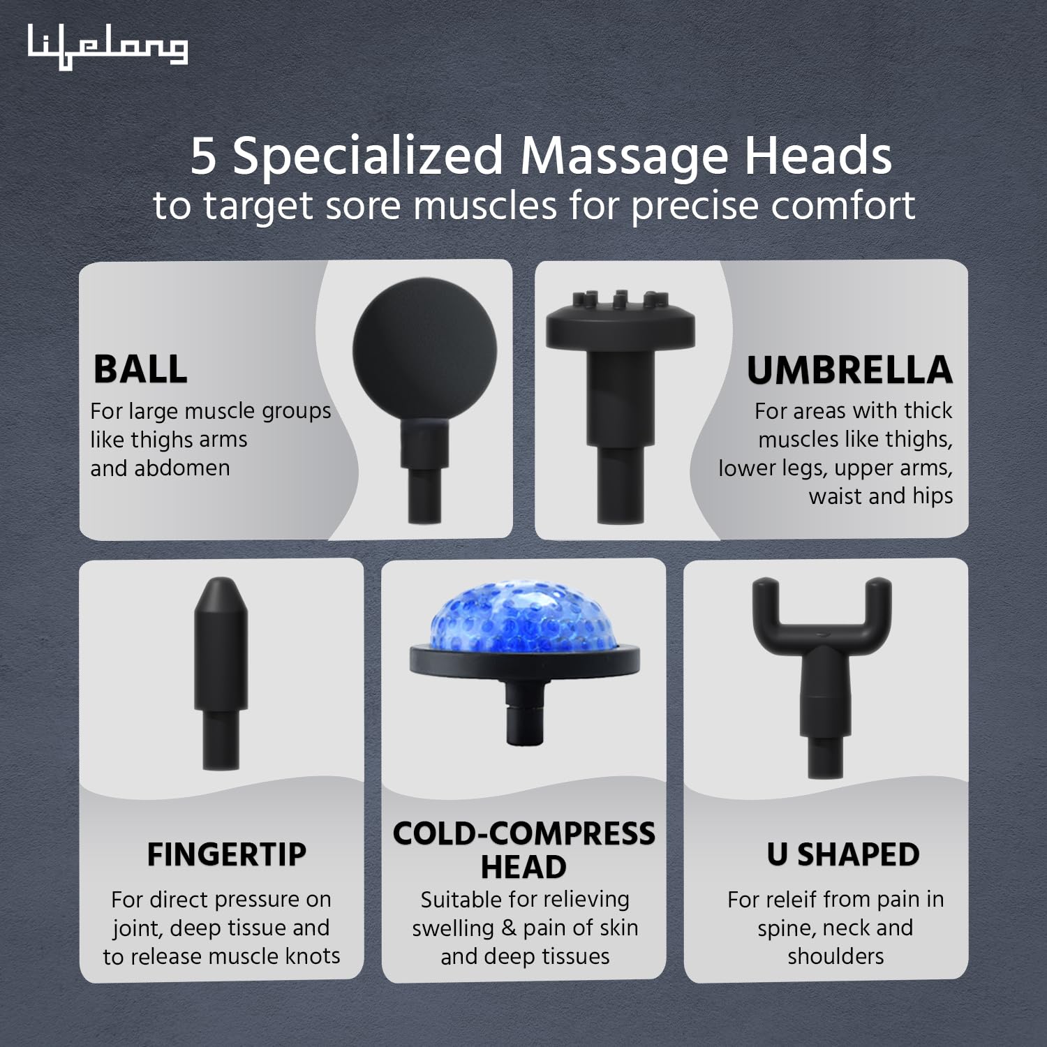 Presenting our strong and adaptable Lifelong Handheld Body Gun Massager with great way to relieve specific muscle pain. With its replaceable massage heads and adjustable intensity settings, this portable massager can be customized to meet your unique needs.