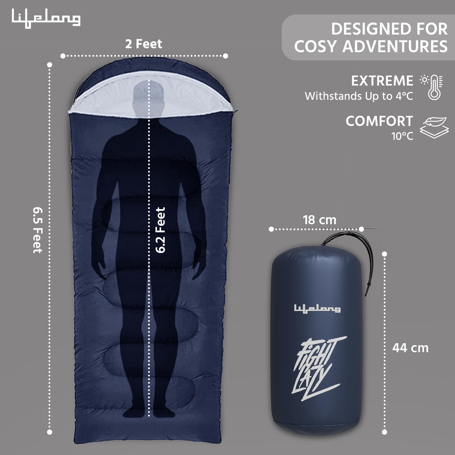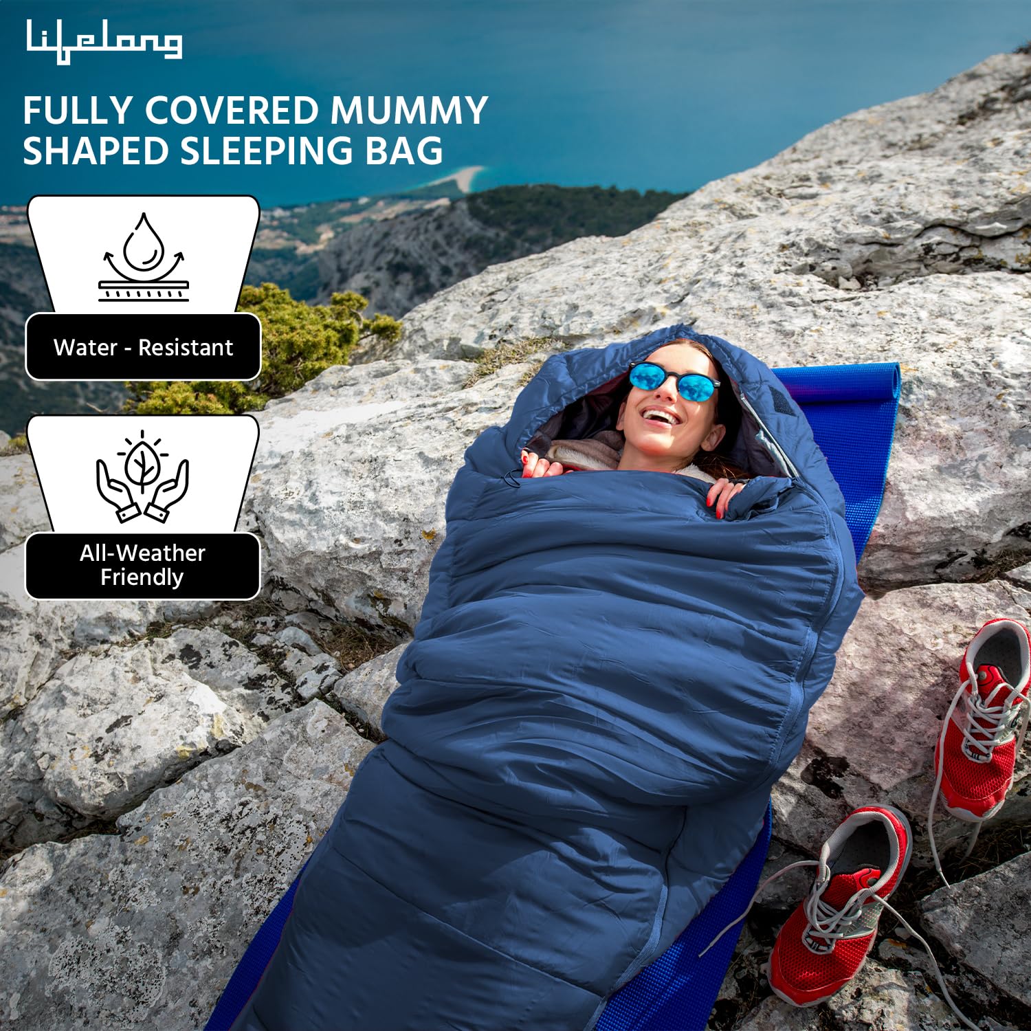 Lifelong Sleeping Bag for Adults – Winter Sleeping Bags Certified for Temperatures 4°C to 10°C – Mummy Shape Foldable Camping Bed Height Upto 6’5”feet – Travel Accessory for Camping, Hiking, Trekking