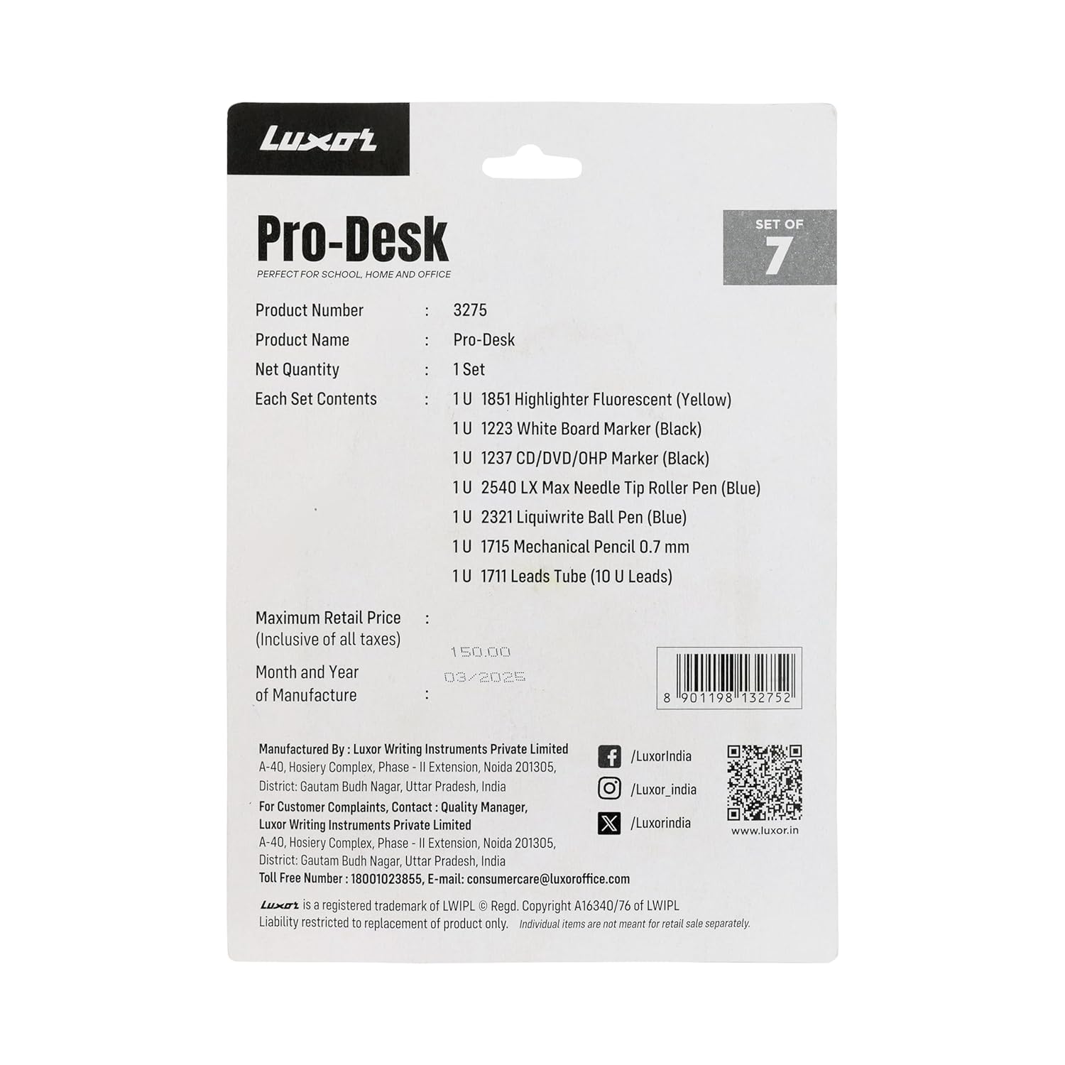 Be the first to review “Luxor Pro-Desk Set of 7 Assorted Combo | Perfect for Home and Office | Essential Stationery Item Kit | Writing tools | Office writing supplies”