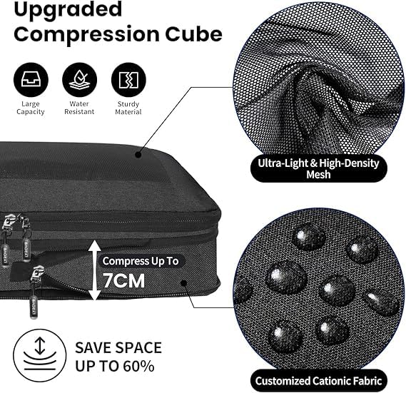 Be the first to review “Lyrovo Nylon 6pcs Compression Packing Cubes for Travel, Lightweight Vacation Travel Essentials, Travel Accessories for Suitcase Organizer Bags Set, Durable Luggage Organizer, Black”