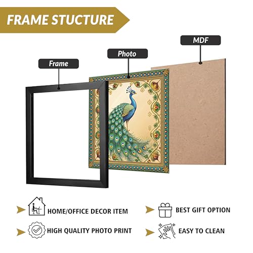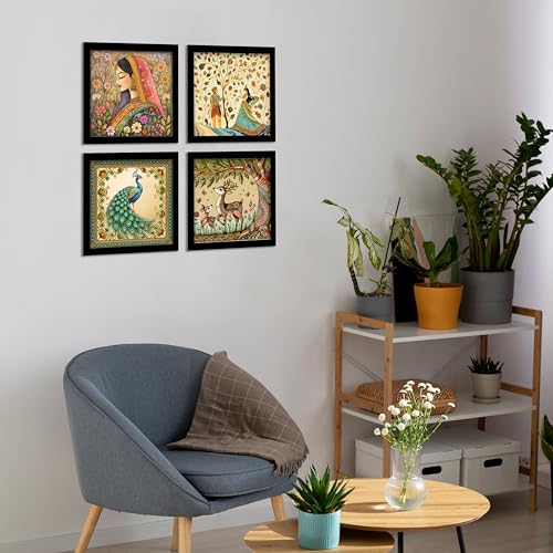 Madhubani Art Framed Painting For Home, Living Room, Hall | Traditional Rajasthani Pichwai Art Paitnings With Frame For Home Decor (Set Of 4)
