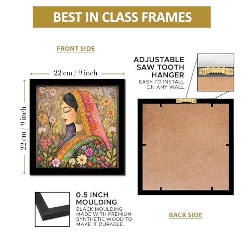 Remodel your dwelling house with this beautiful set of 4 Madhubani and Pichwai artwork work from Rousrie. These conventional wall hangings fantastically mix the inventive heritage of Bihar’s Madhubani and Rajasthan’s Pichwai kinds, creating a shocking multi-coloured show. Every bit measures 22 by 22 cm and options motivational themes, good for including an inspiring contact to your own home décor. The trendy-styled wall mount design makes set up hassle-free, whereas the picket building ensures sturdiness. Preferrred for indoor settings, notably in dwelling rooms and halls, these ornamental panels convey an ideal fusion of conventional artistry and modern aesthetics. The set consists of 4 items that may be organized to create a charming wall association. Whether or not you are an artwork fanatic or wanting so as to add a cultural contact to your house, these framed work function an ideal dialog starter and point of interest in any room.
