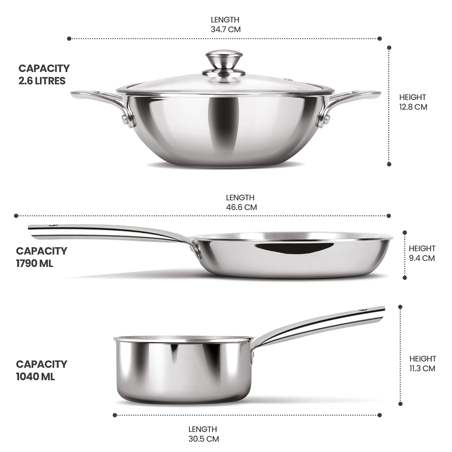 UPGRADE YOUR KITCHEN: With our premium Stainless steel triply cookware compatible with induction stove and steel Gas stove.