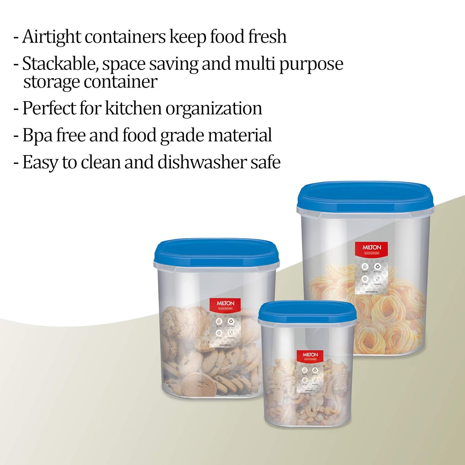 Be the first to review “MILTON Quadra Modular Multi-Purpose Plastic Containers with Lid, Set of 3 (2L, 3L & 4L) Kitchen Storage Container Set for Spices, Atta, Grains Organizers, Transparent Dabba, Blue”