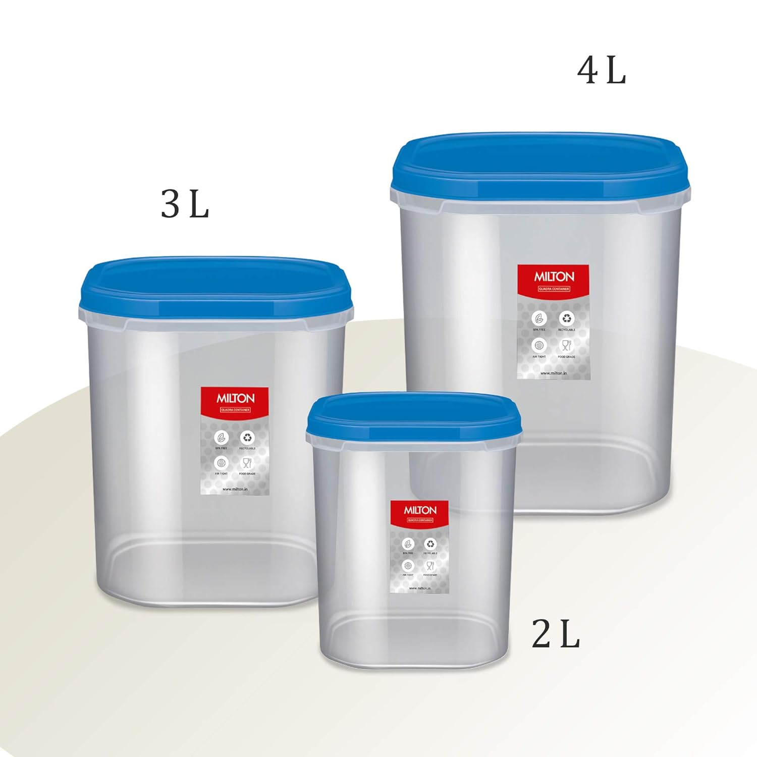 Colour: Blue; Material: Plastic; Package Content: 3 – Piece Quadra Storage Container (2, 3 & 4 Litres).