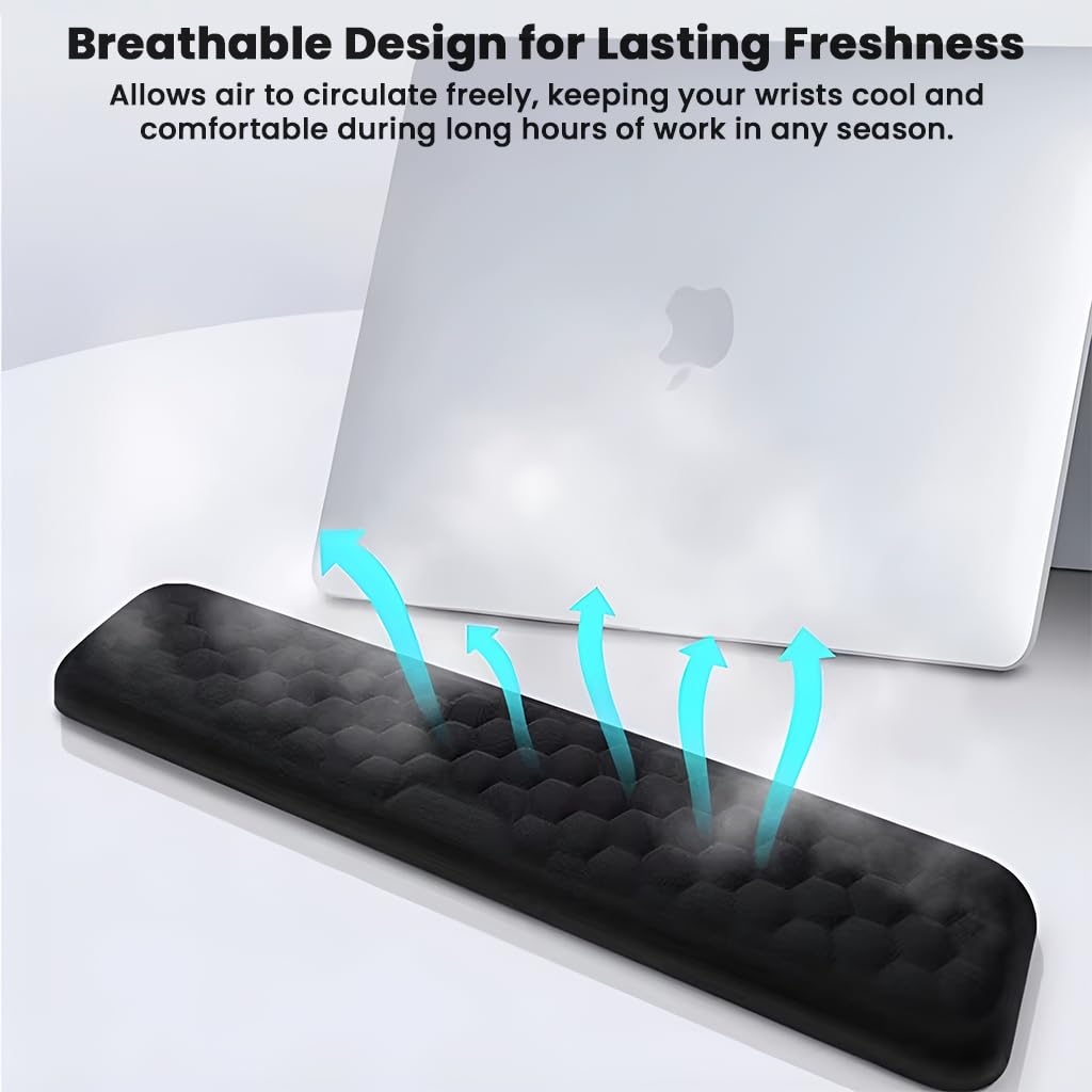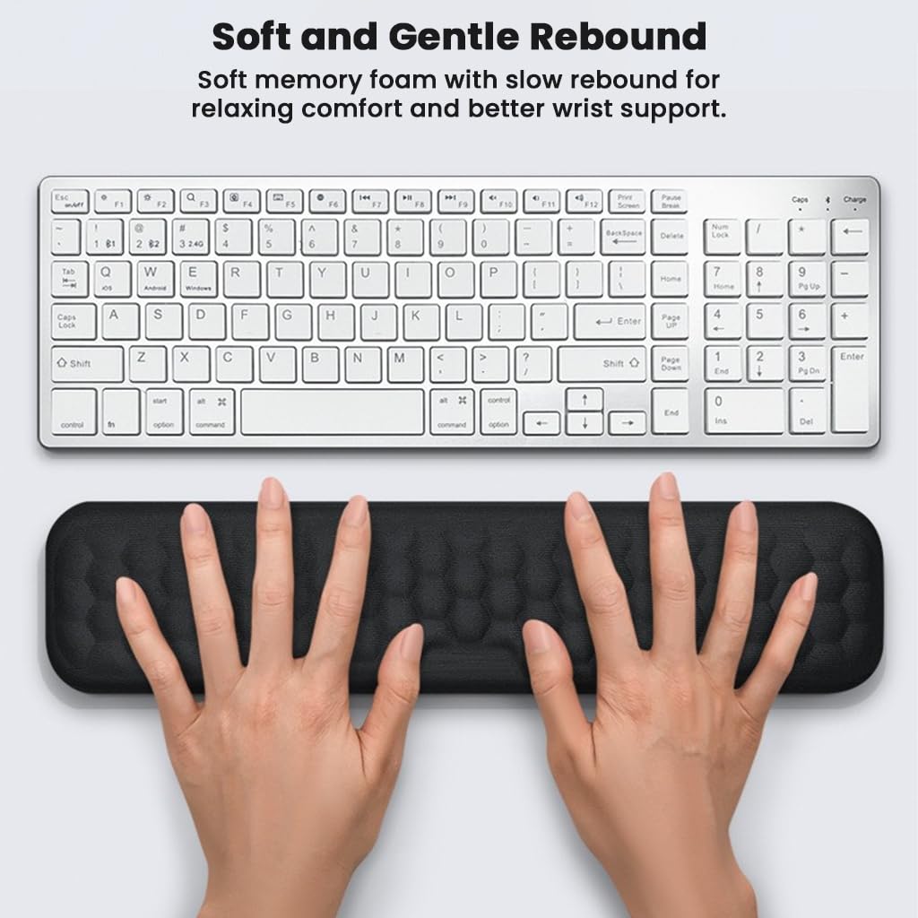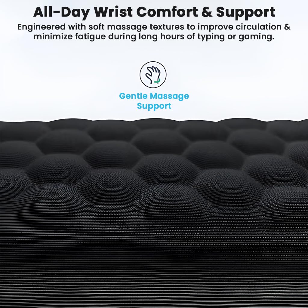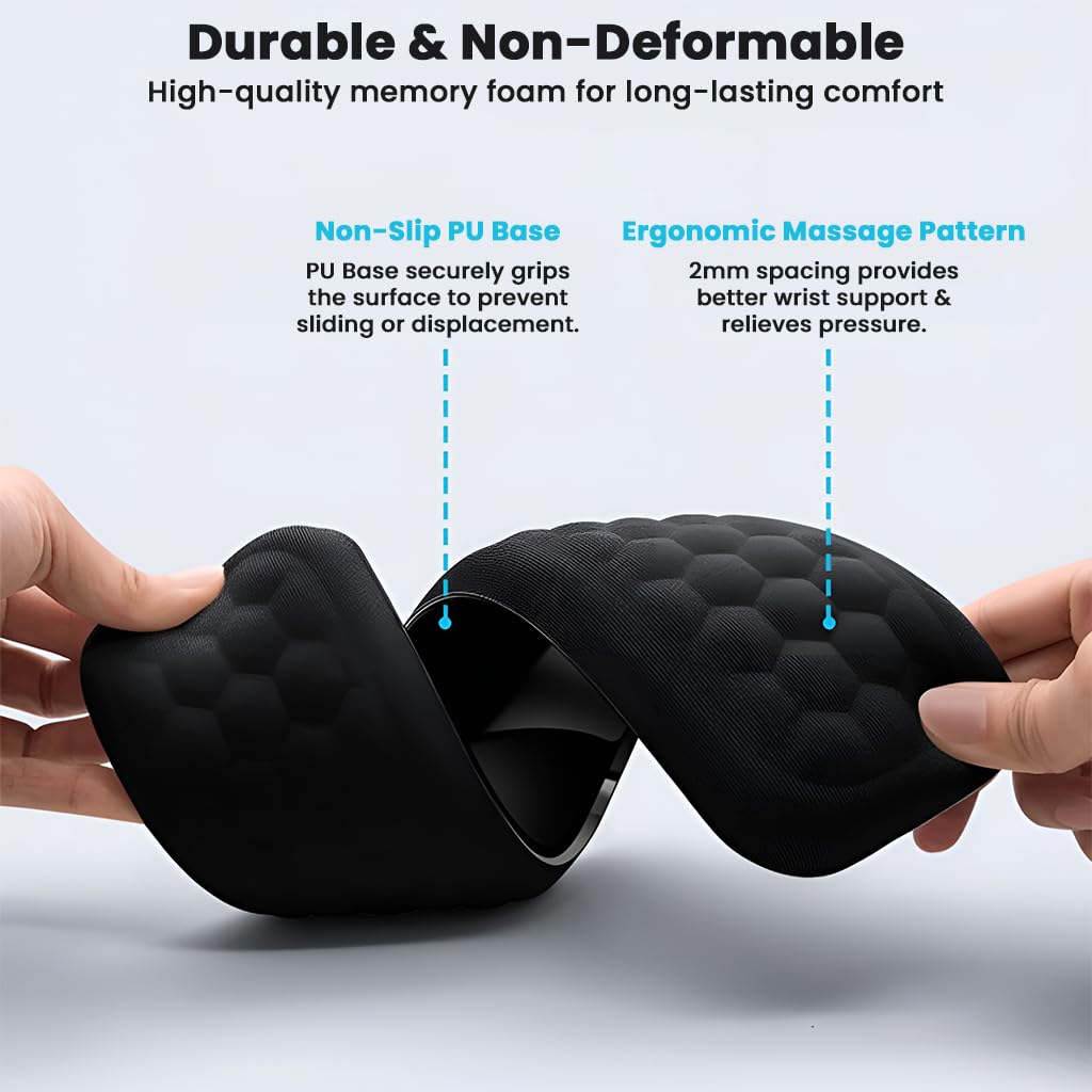 PREMIUM MEMORY FOAM CUSHION FOR MAXIMUM COMFORT: Our high-density memory foam adapts to the natural curve of your wrist, providing superior comfort and pressure relief during long hours of typing or gaming. The foam evenly distributes weight to reduce strain, fatigue, and wrist tension—ideal for preventing carpal tunnel and repetitive strain injuries.