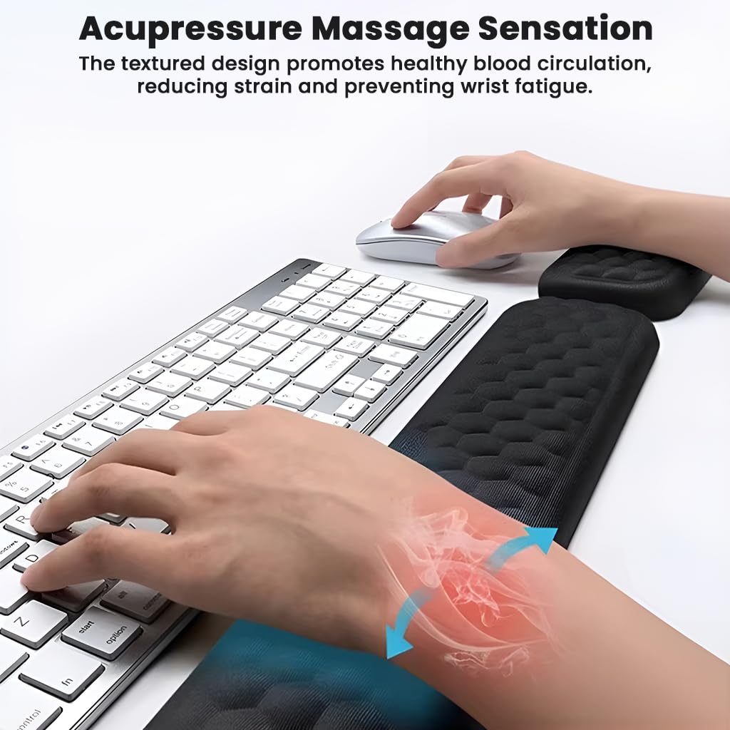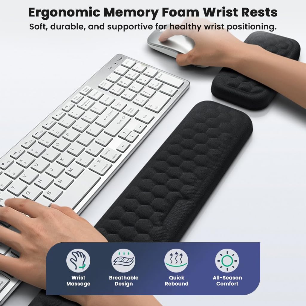 PERFECT FOR ALL-DAY USE: Whether you’re working from home, studying, or gaming, TECPHILE’s ergonomic wrist rest set ensures lasting comfort, healthy wrist support, and enhanced productivity.