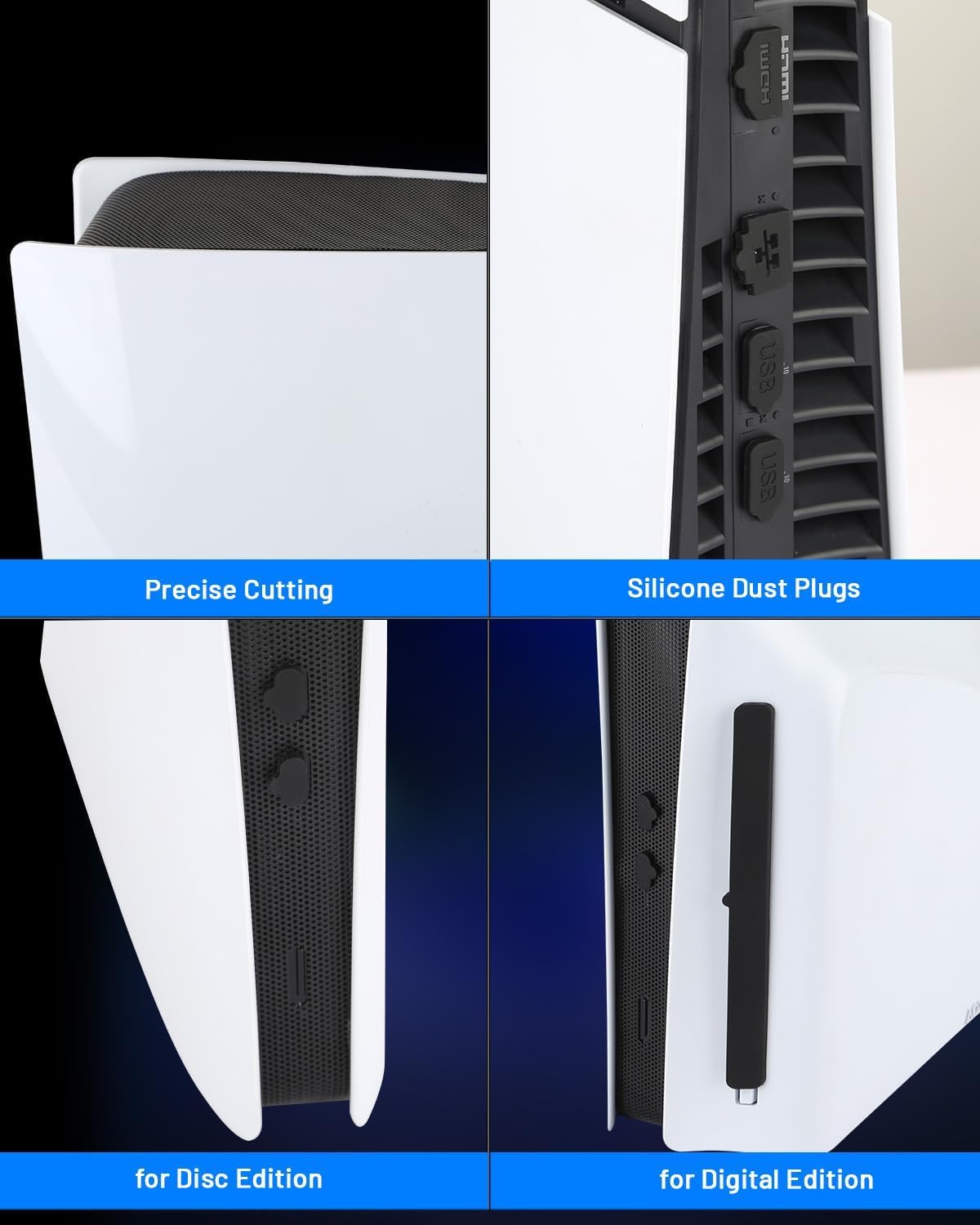 Easy to Clean: Your PS5 Slim Console middle cover is easy to clean. You can periodically remove the dust cover and gently brush off any dust or debris using a soft brush or use a blow dryer on a cool setting to maintain its cleanliness, ensuring long-lasting protection for your console
