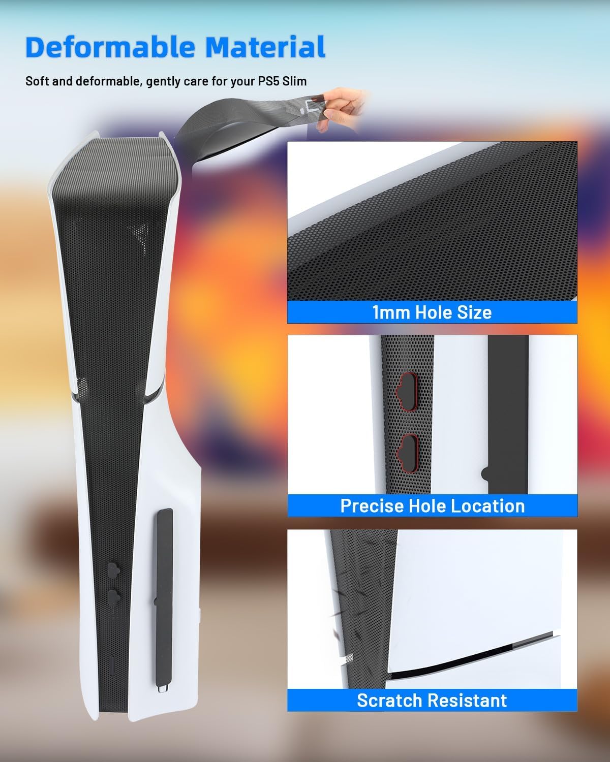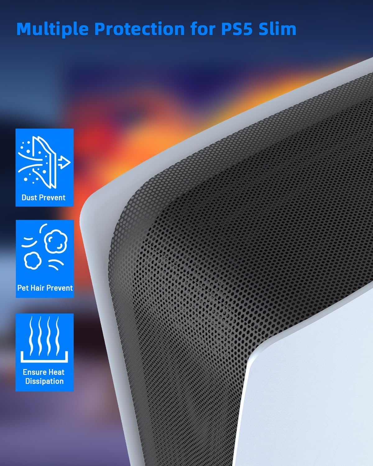 Excellent Ventilation: Despite its dust-repelling function, the PS-5 Slim Dust Cover Net maintains excellent ventilation. It is designed with specially crafted mesh openings that allow sufficient airflow to keep your console cool and prevent overheating, ensuring the normal operation of your P5 Slim machine