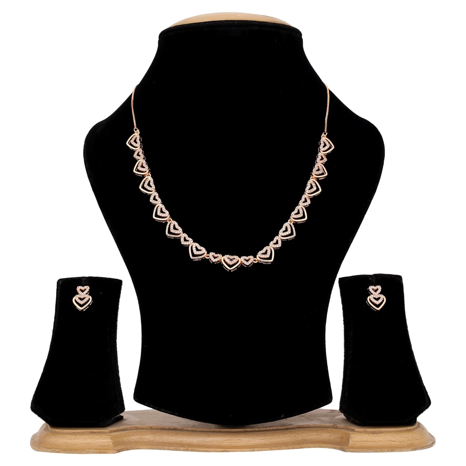 Elegant Rose Gold Plated Jewellery Set for Women Add a touch of timeless elegance to your ensemble with this stunning rose gold plated jewellery set, beautifully adorned with premium American Diamond stones. Designed for modern women who love a blend of tradition and glamour.