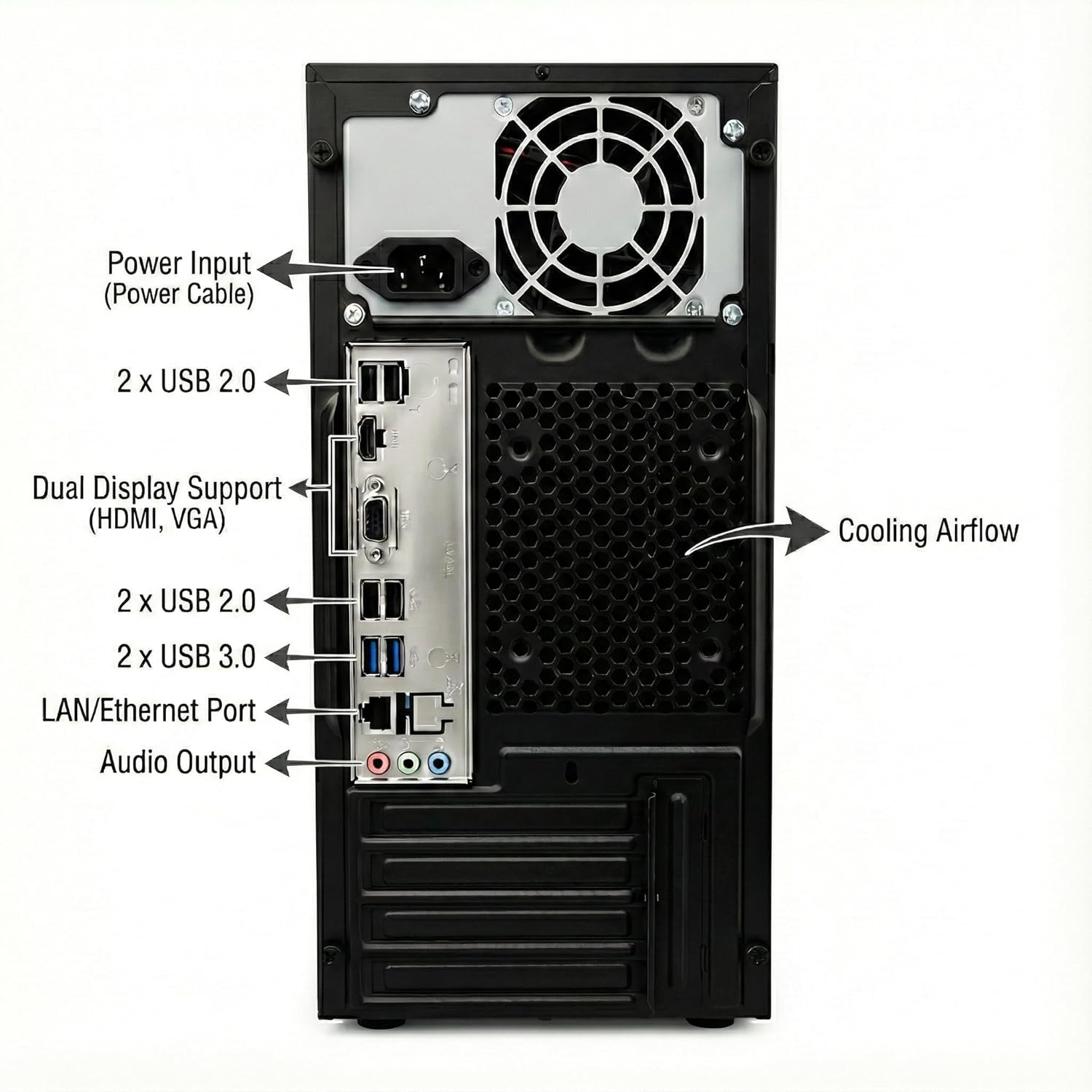 Stay Connected to Everything - USB ports, HDMI/VGA, Ethernet port, audio outputs,cooling airflowStay Connected to Everything - USB ports, HDMI/VGA, Ethernet port, audio outputs,cooling airflow