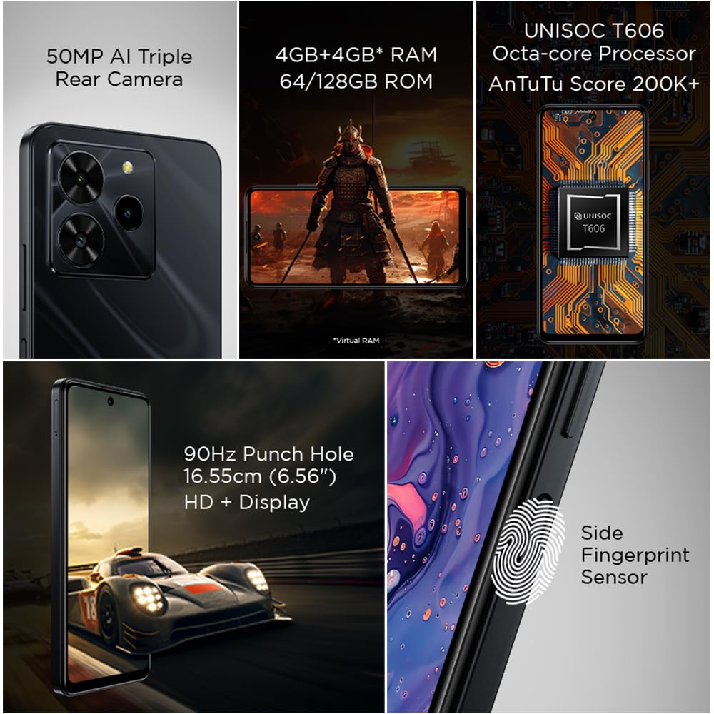Enjoy seamless multitasking with 4GB RAM and 4GB expandable RAM, ensuring smooth performance. With up to 128GB storage, store more apps, photos, and videos without compromising speed or efficiency.